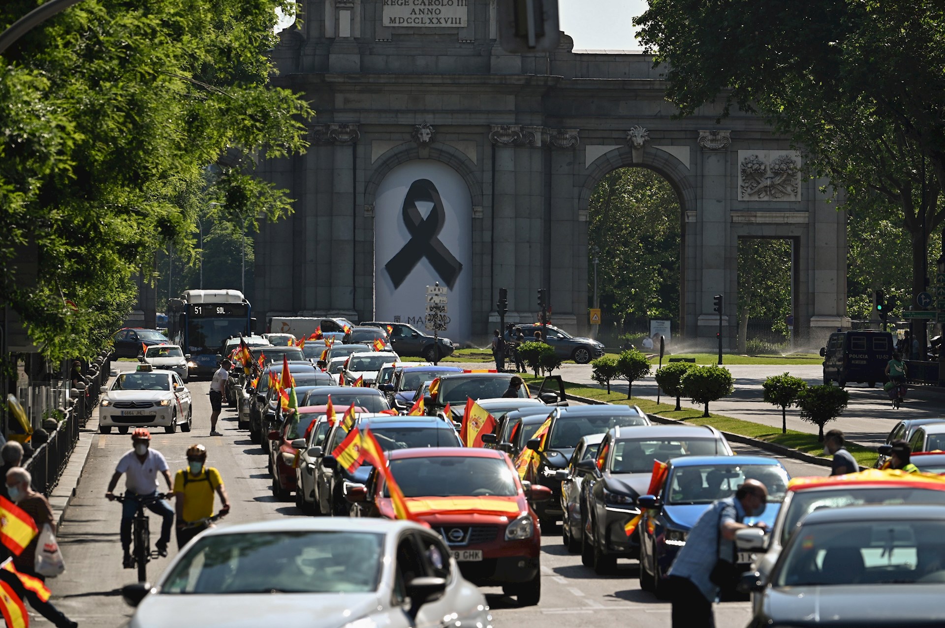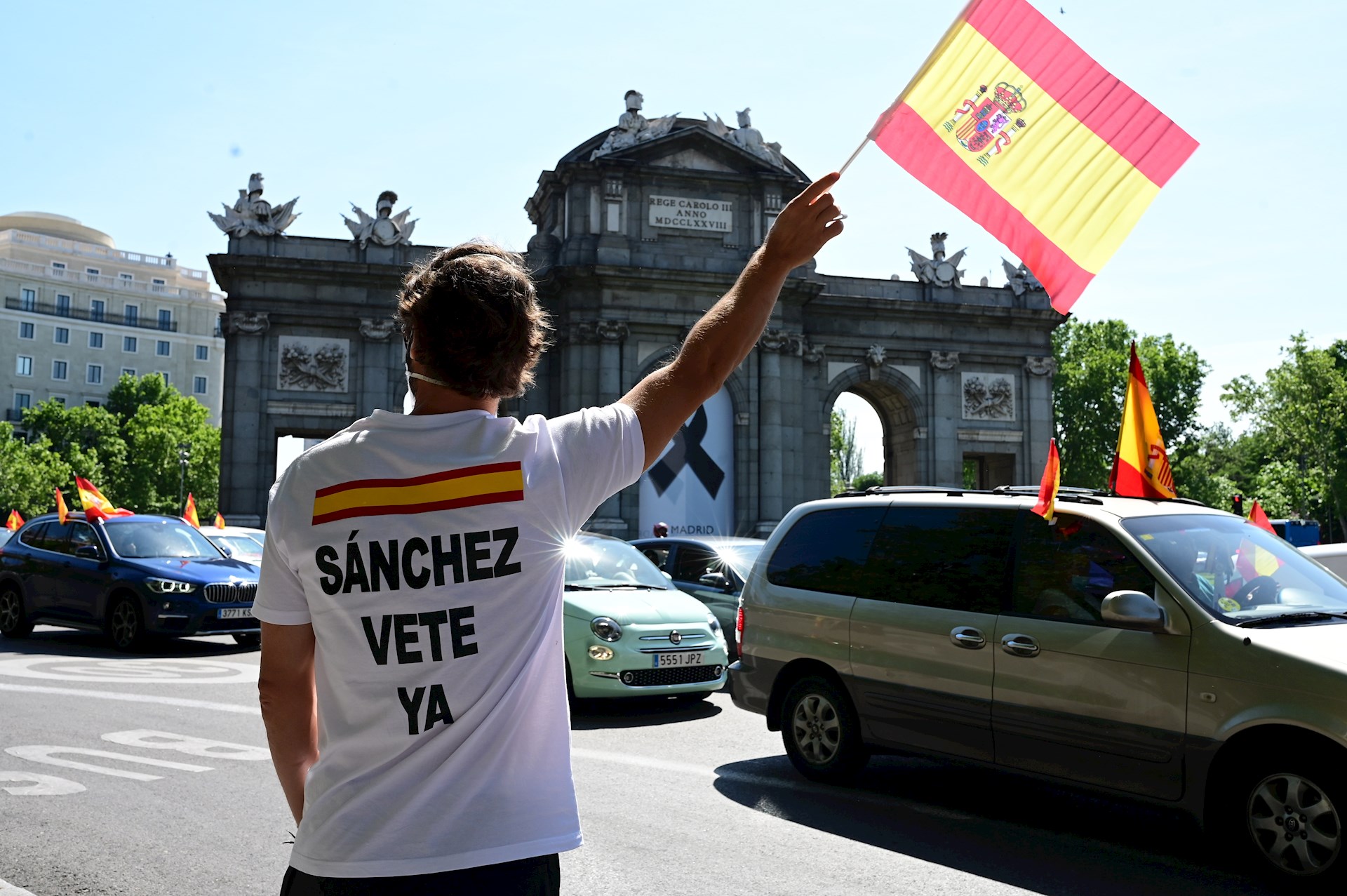Manifestación en coche en la Puerta de Alcalá en Madrid, que Vox ha promovido contra la gestión del Gobierno en la pandemia de coronavirus.