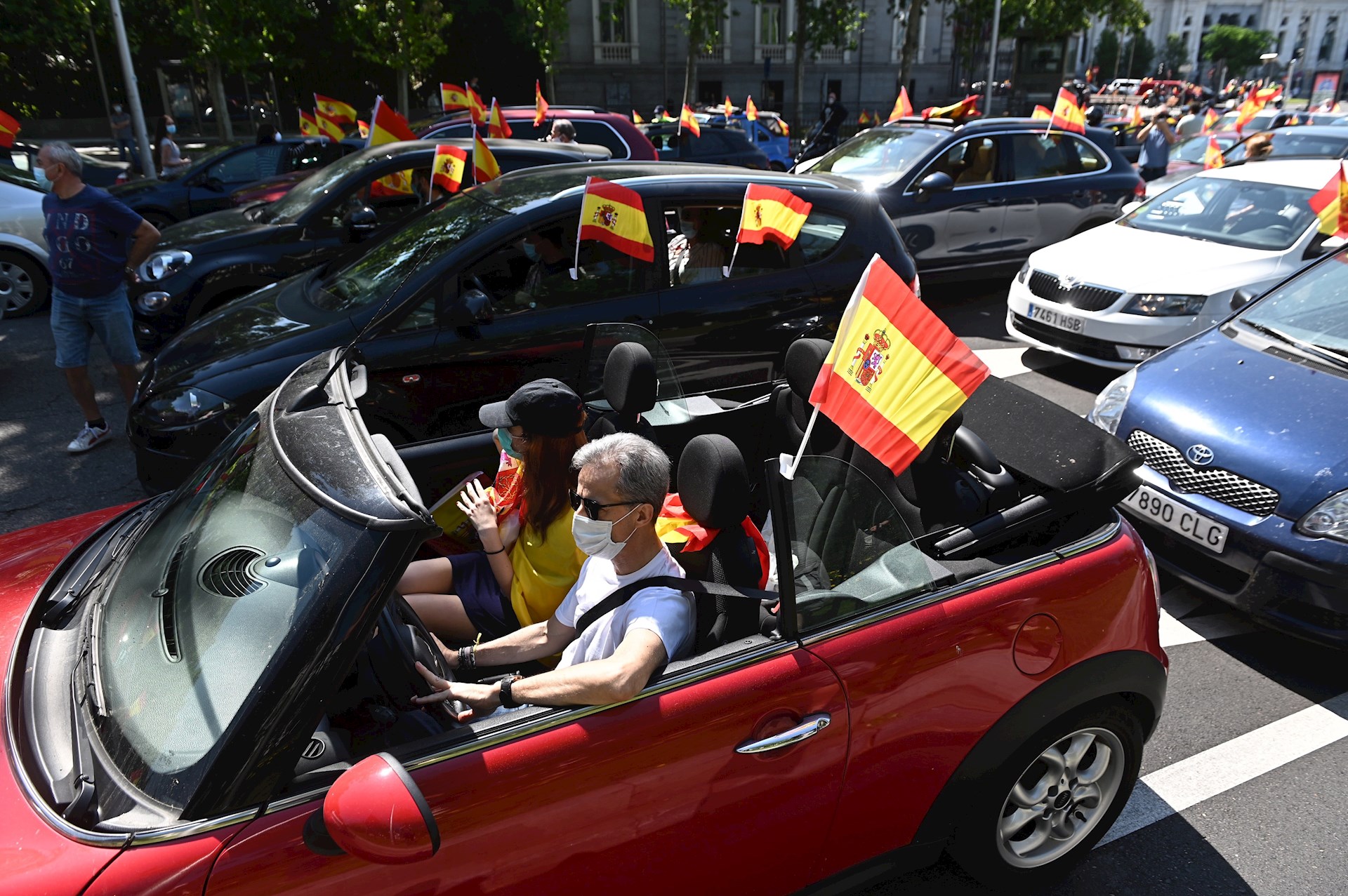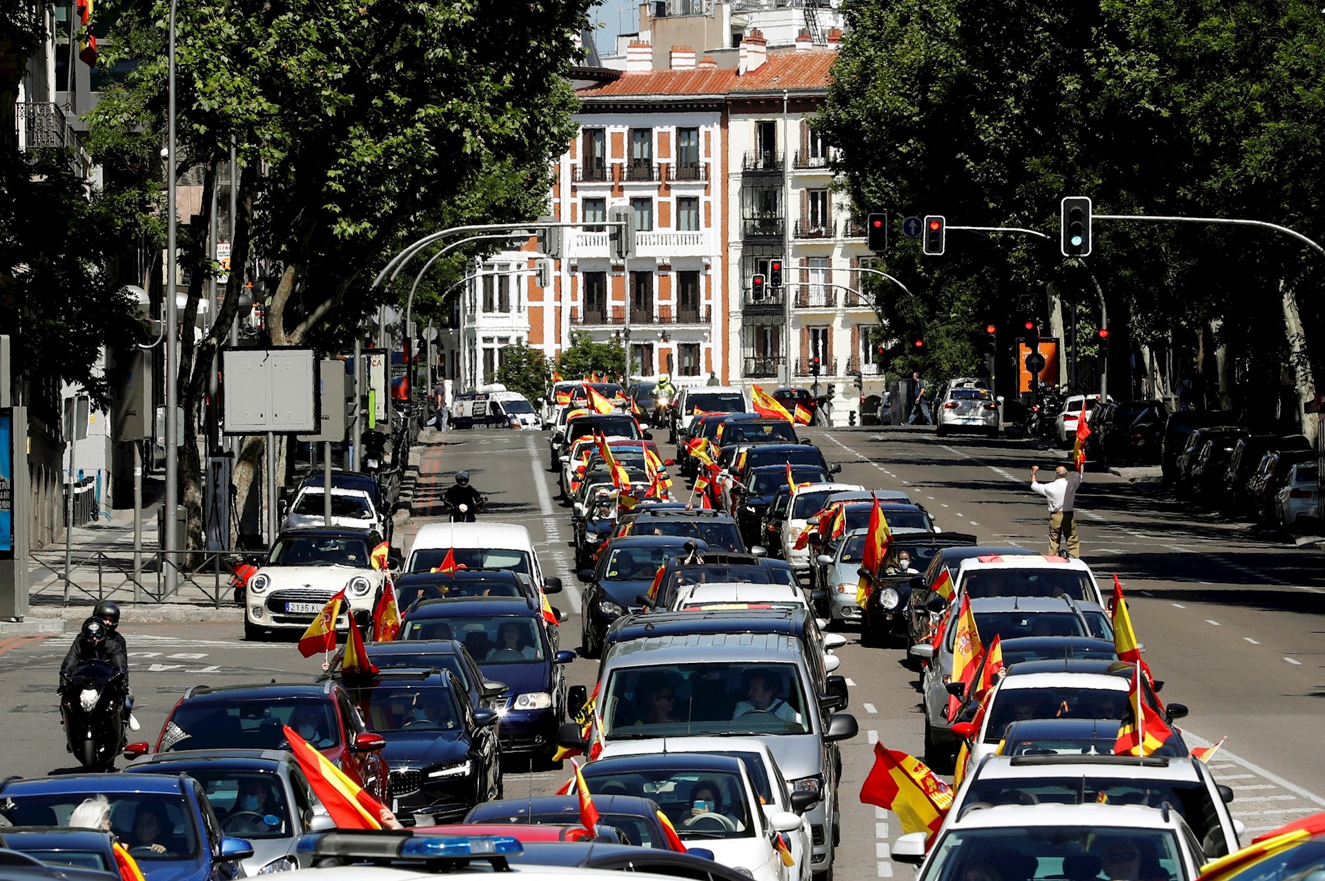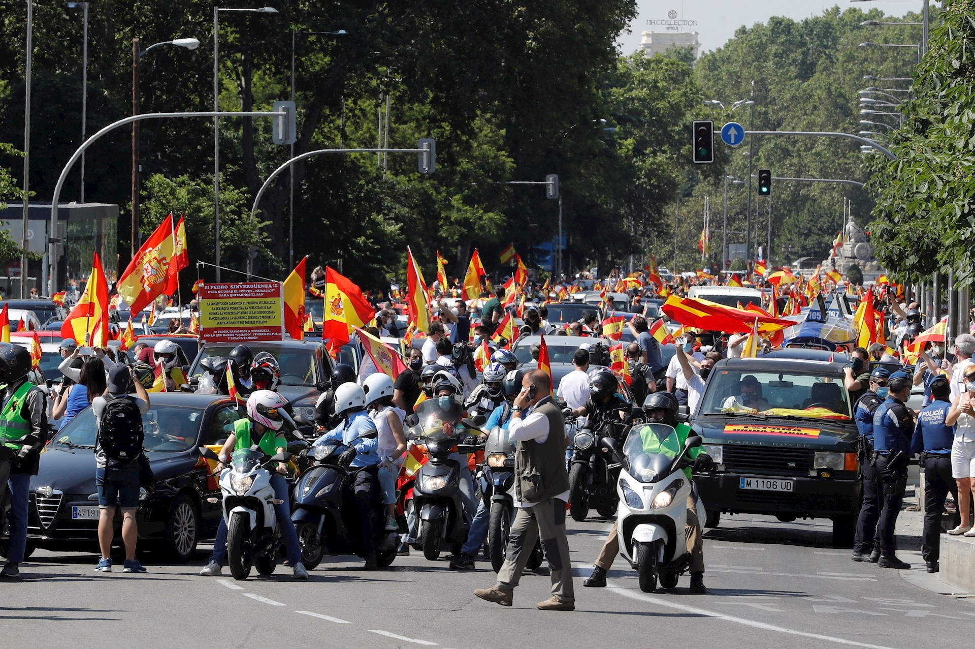 Manifestación en coche en Madrid que Vox ha promovido contra la gestión del Gobierno en la pandemia de coronavirus, tras obtener permiso de la Justicia o las delegaciones del Gobierno.