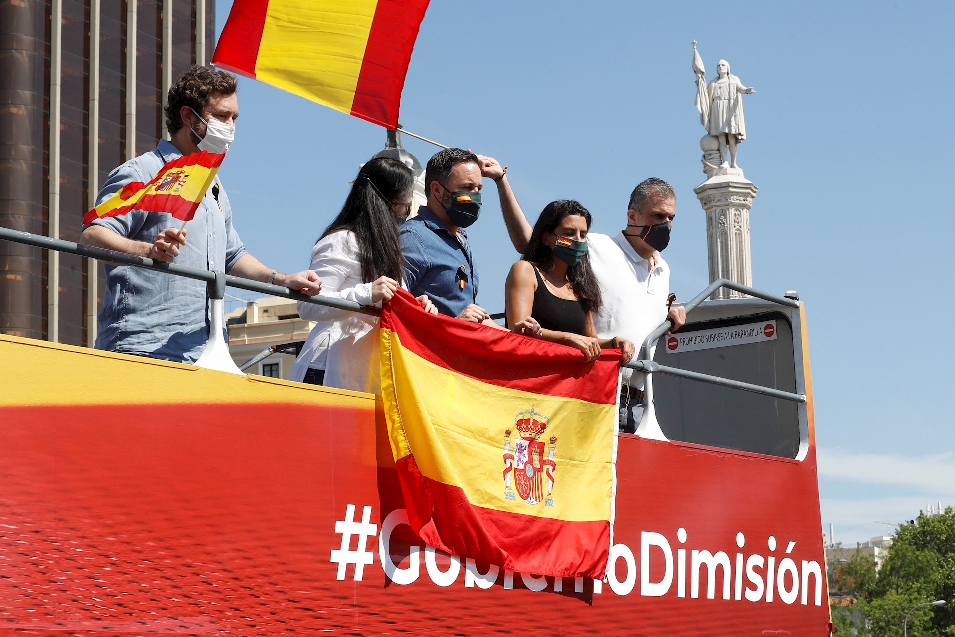 Santiago Abascal y los principales líderes de Vox, durante la manifestación caravana en Madrid.