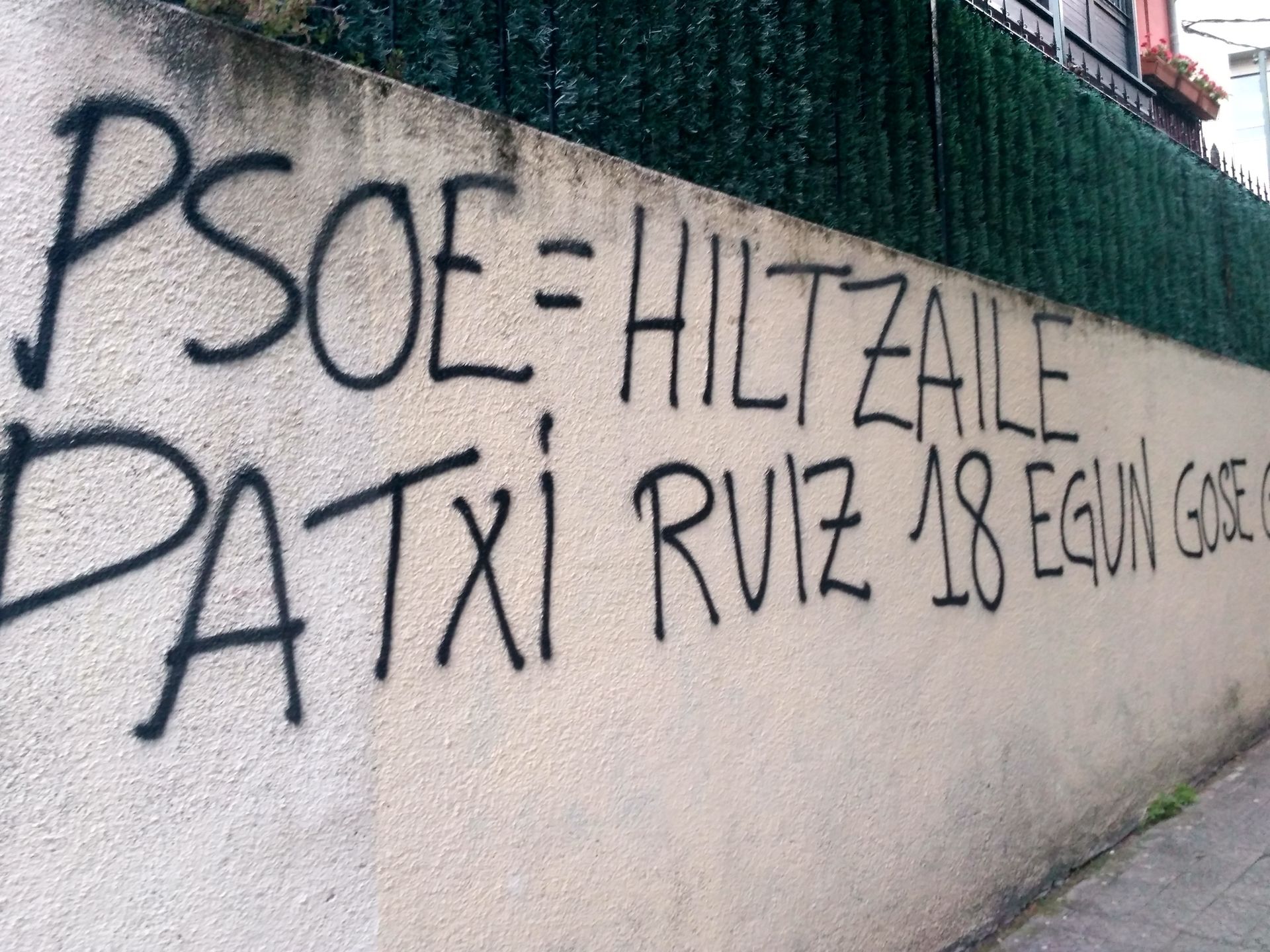 Las calles del País Vasco han aparecido de nuevo este jueves con pintadas a favor de la amnistía de los presos de ETA, del terrorista Patxi Ruiz –que se encuentra en huelga de hambre y sed– y en las que se llama "asesino" al PSOE, según informa Europa Press.