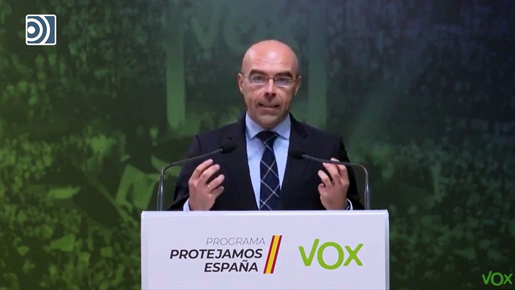 El portavoz del Comité de Acción Política de Vox, Jorge Buxadé, quien ha señalado que su partido quiere que España se recupere de la crisis económica provocada por el Covid-19.