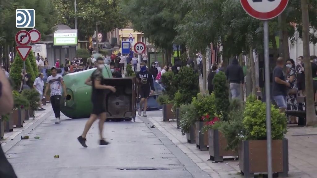 Sin embargo, cuando se estaba celebrando el acto, al que han asistido alrededor de medio centenar de personas, los violentos han comenzado a lanzar objetos, como botellas y tuercas, lo que ha obligado a la Ertzaintza a intervenir para disolver la concentración. A partir de ahí se han sucedido las cargas policiales mientras los manifestantes han cruzado contenedores en el Paseo de Los Fueros y han quemado otro contenedor en la calle Vizcaya.