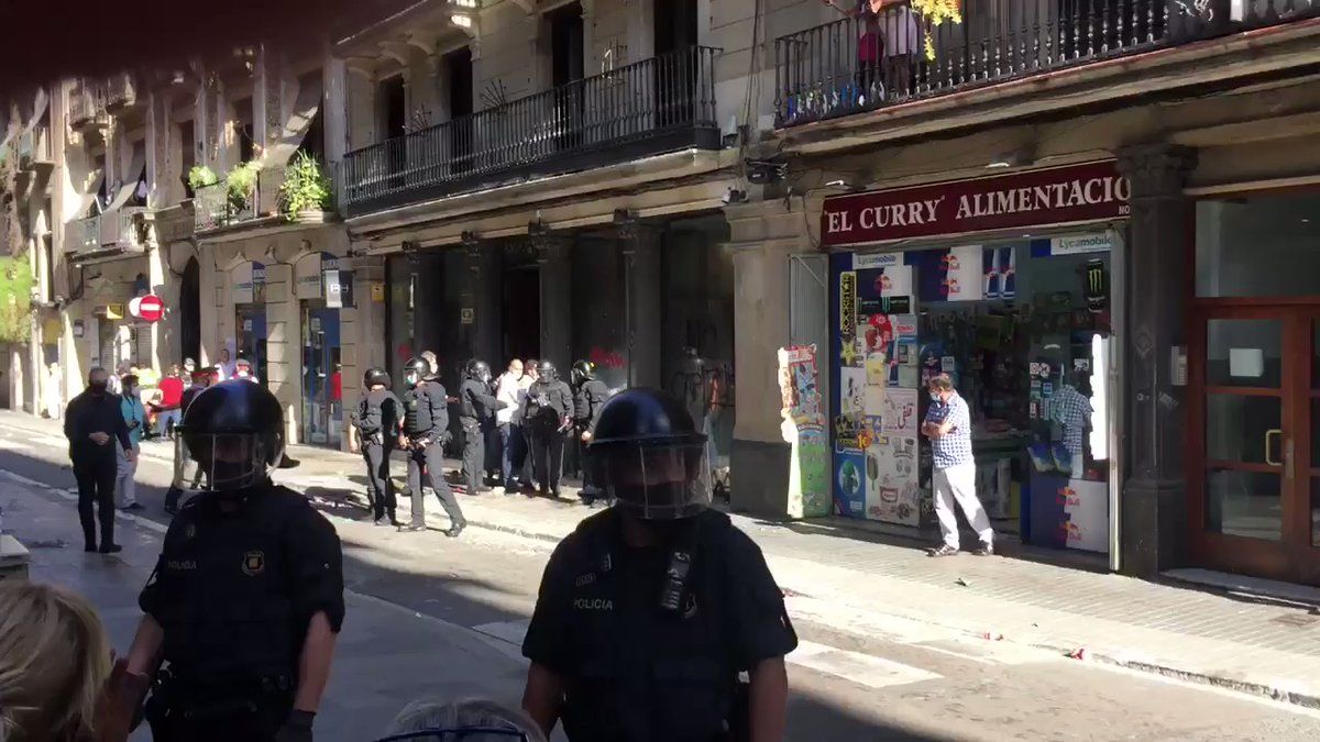 Veinte minutos después de la "incursión" de los diputados en el barrio ha aparecido un numeroso grupo de sujetos que la han emprendido con Garriga y De Meer arrojándoles latas y huevos. Los dirigentes de Vox se han tenido que refugiar en un hotel para evitar que las agresiones fueran a más. Al cabo de una media hora se ha personado en el lugar una dotación de antidisturbios de los Mossos d'Esquadra que ha dispersado a los agresores.