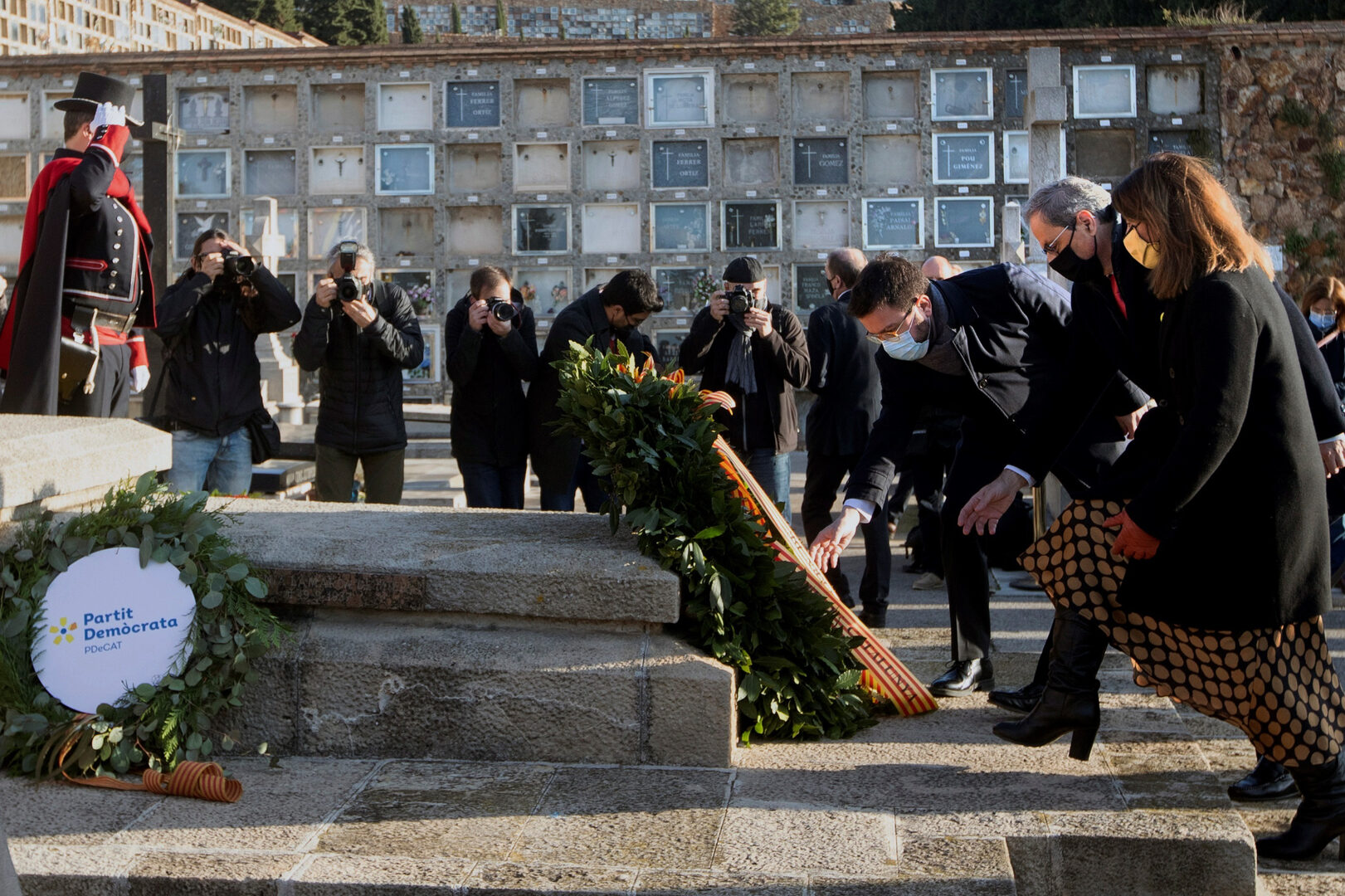 La ofrenda en la tumba de Macià, muerto el 25 de diciembre de 1933, se ha convertido en el escenario de la respuesta separatista al mensaje de Felipe VI. Quim Torra, el inhabilitado al que los partidos separatistas pasean como si aún fuera el presidente de la Generalidad, afirmó que "la comparación de las dos figuras nos muestra hasta que punto es importante el homenaje a Maciá y nos lleva a la disyuntiva o monarquía española o república catalana". "Es imposible -añadió- que Cataluña tenga los recursos y el bienestar que se merecen sus ciudadanos si no tenemos la independencia".