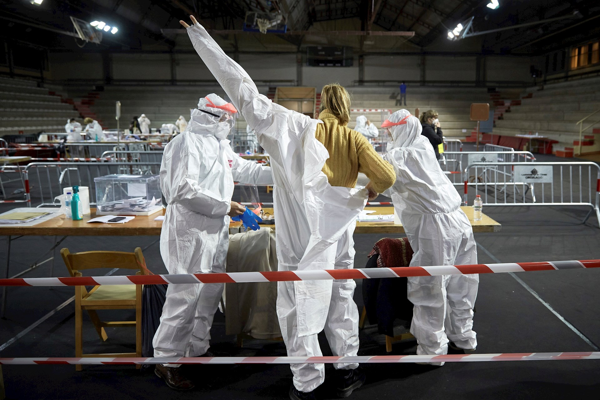 El disparate de permitir votar a contagiados de coronavirus: las fotos más impactantes de las elecciones catalanas