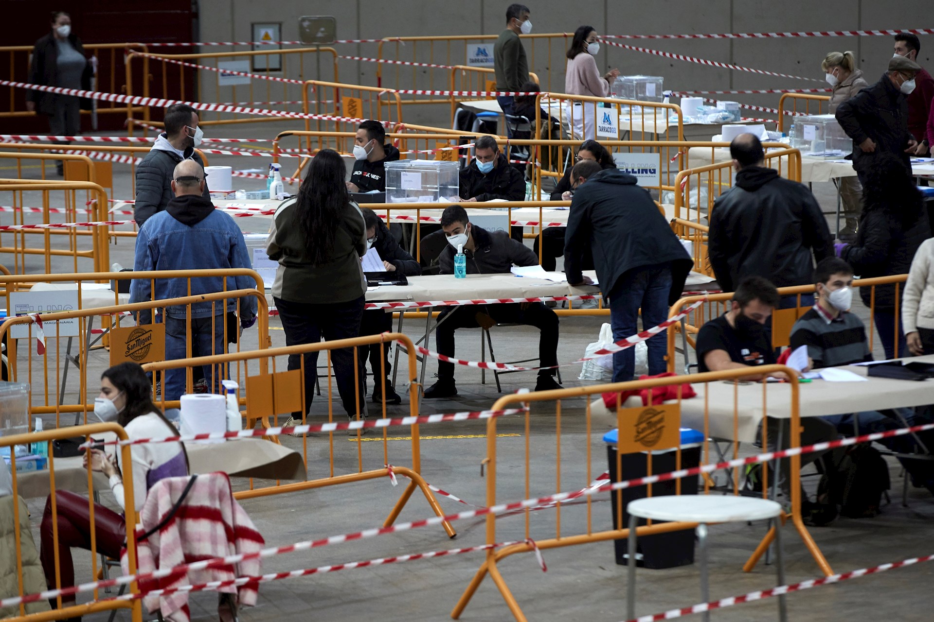 Varias personas votan en el Tarraco Arena de Tarragona este domingo durante las elecciones autonómicas.