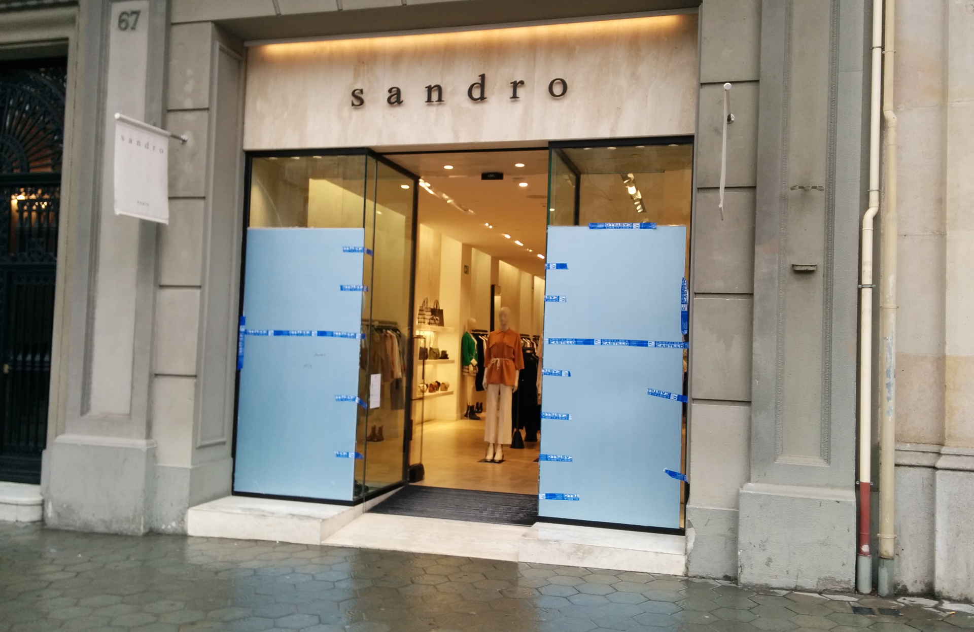 El aspecto del escaparate de la tienda Sandro, en el Paseo de Gracia de Barcelona.