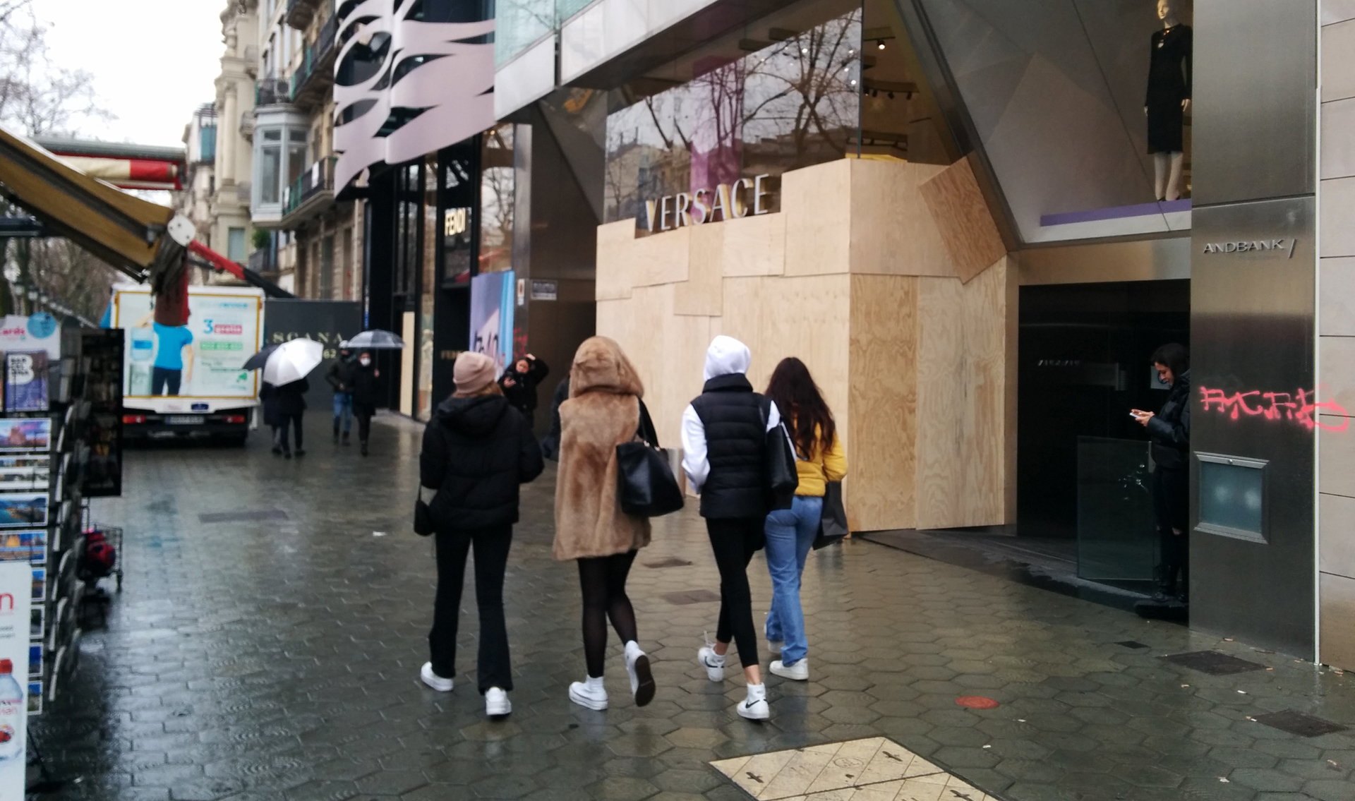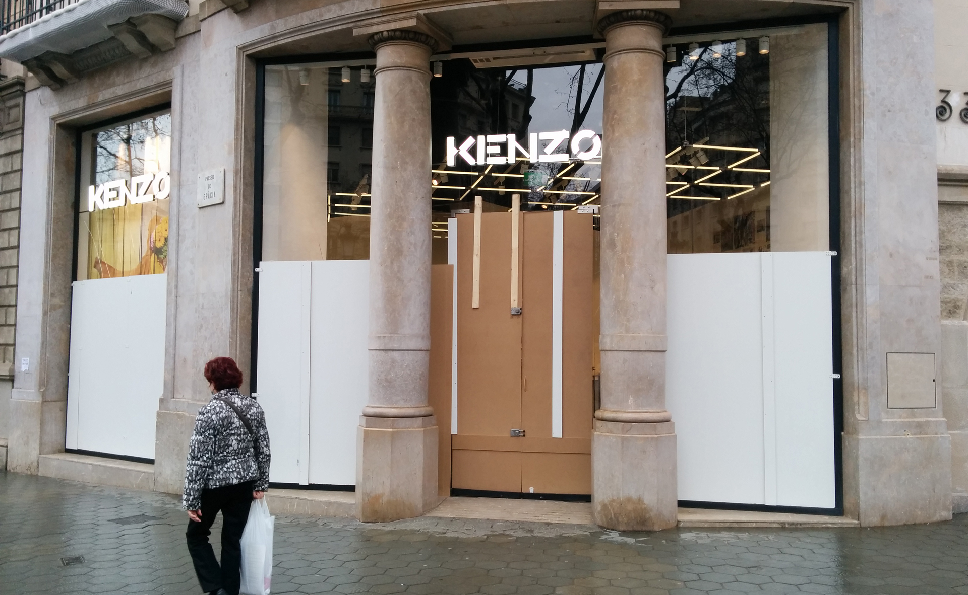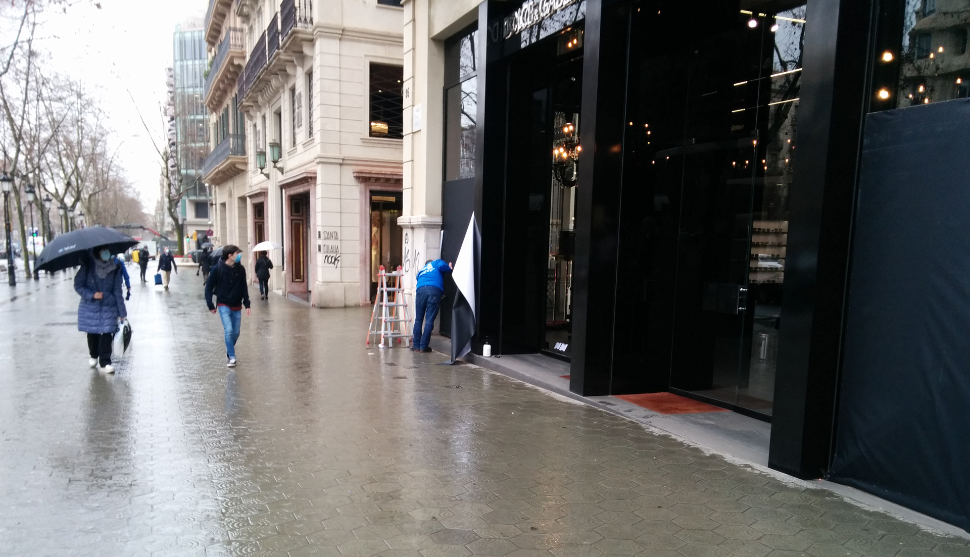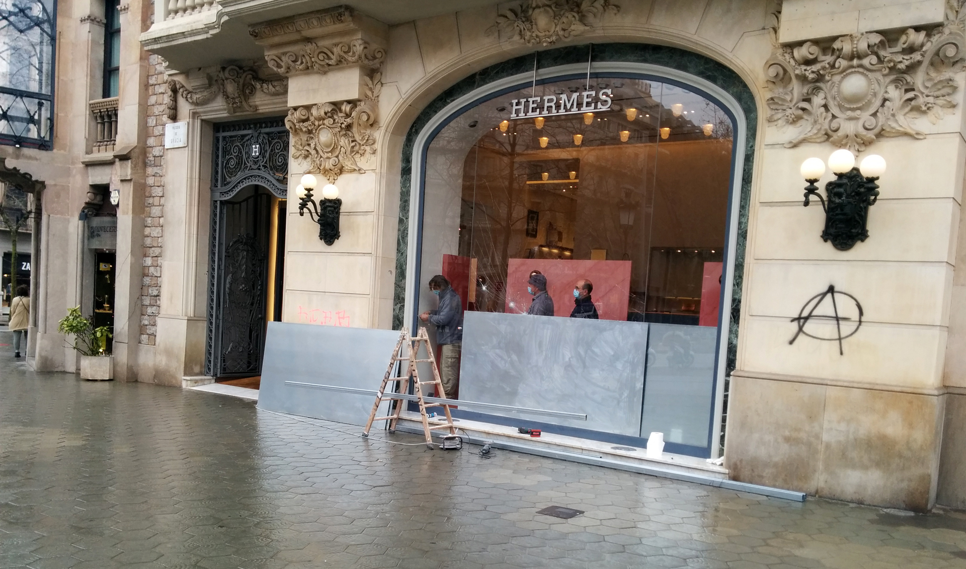 Muchas de las tiendas del Paseo de Gracia de Barcelona han amanecido dañados o completamente tapados.