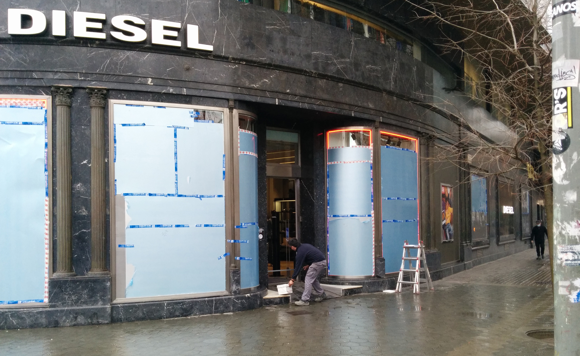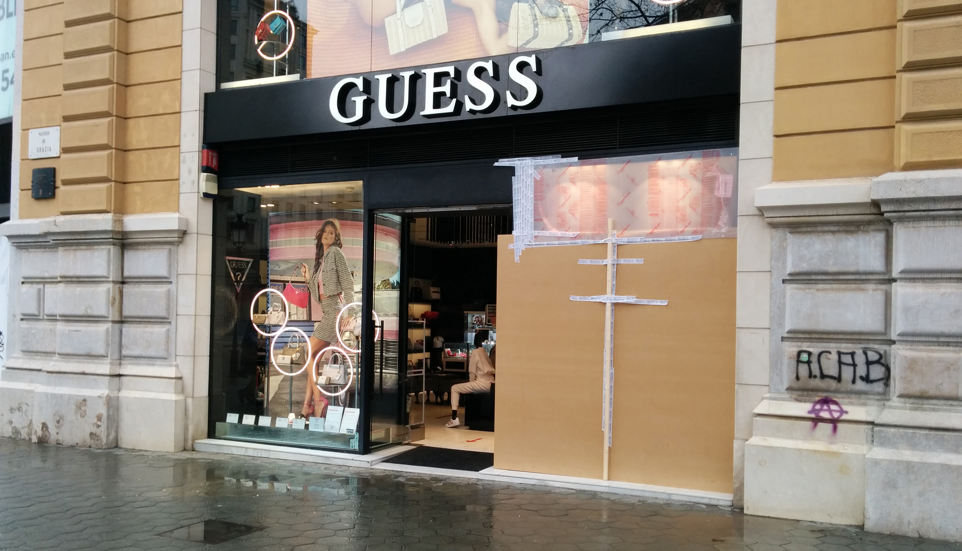 Pintadas y roturas de cristales en la tienda de la marca Guess.
