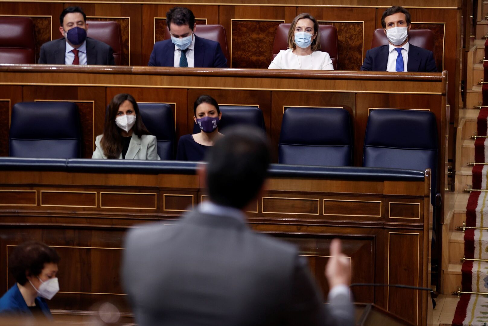 Era la primera sesión de control tras el derrumbe del PSOE en las elecciones madrileñas del 4-M que ha servido para que el líder del PP, Pablo Casado, le eche en cara al presidente del Gobierno, Pedro Sánchez, "que ha sido sorpassado en la capital de España, nuestra circunscripción. ¿Cómo puede presumir?". Una pregunta a la que siguieron otras tres de Casado: "¿Por qué no convoca ya el debate del estado de la nación? ¿Por qué no trae aquí el plan de reformas? Y, tercera, ¿por qué bloquea el plan B jurídico para evitar más muertes y mas contagios en nuestro país. Si tiene decoro, conteste ya".