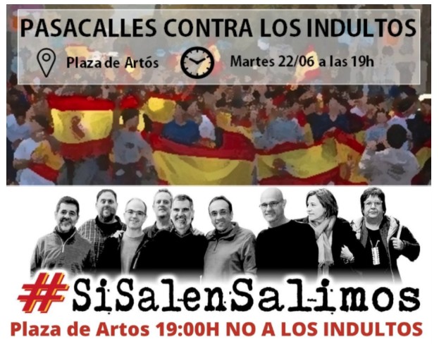 En la convocatoria también se apunta que "tras el anuncio de hoy por parte del presidente del Gobierno de conceder los indultos a los políticos independentistas, nos vemos en la obligación de salir a la calle ya que tal y como declaró el Tribunal Supremo en un informe contrario a la concesión del indulto, no hay motivos racionales ni legales para otorgarlos".