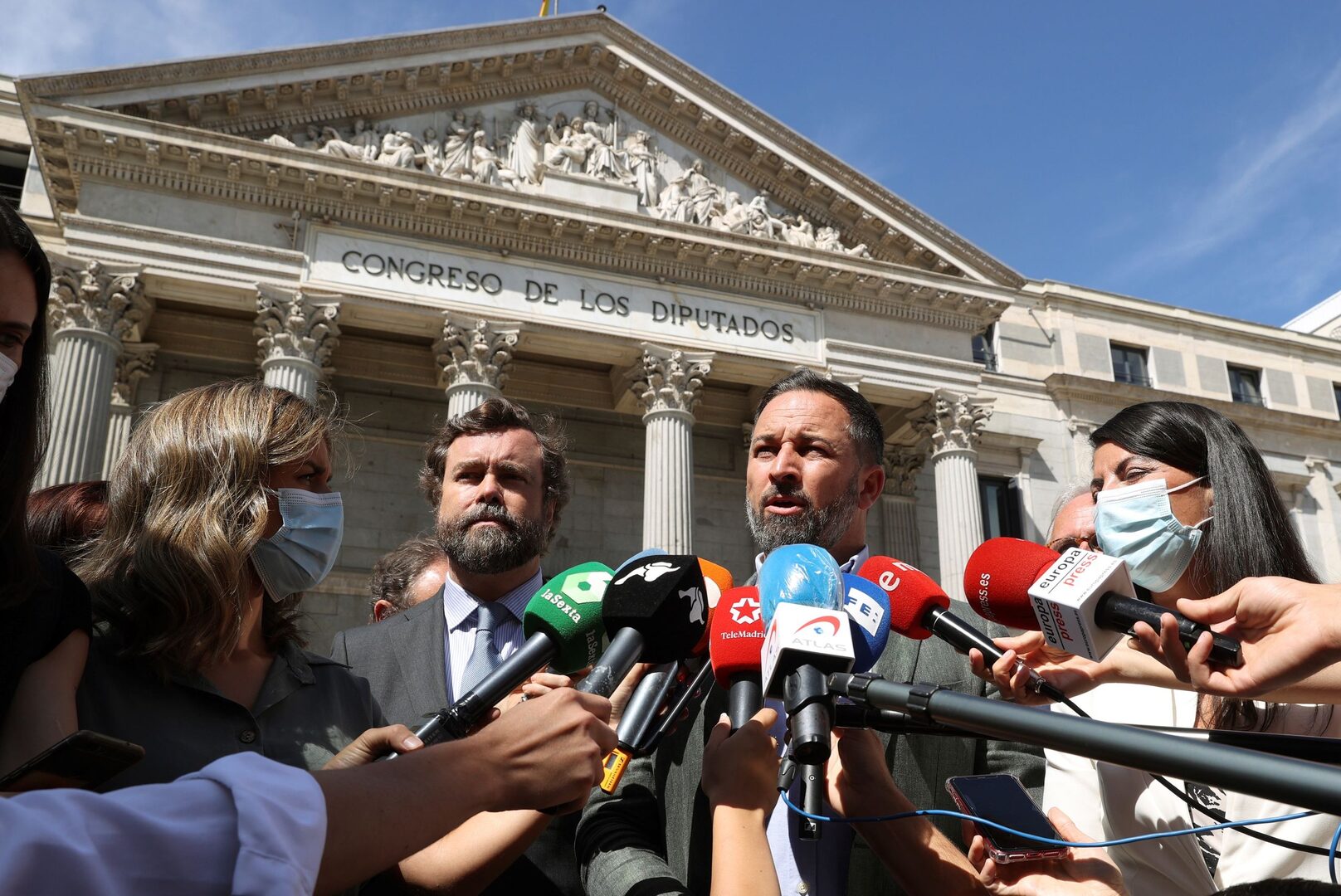 "No estamos para celebrar la sentencia, no podemos hacerlo porque se ha constatado que el Gobierno está dispuesto a incumplir las leyes y a pisotear la Constitución", ha explicado el líder de Vox, que cree que queda demostrado que la moción de censura que presentó contra el presidente Pedro Sánchez estaba "plenamente" justificada.