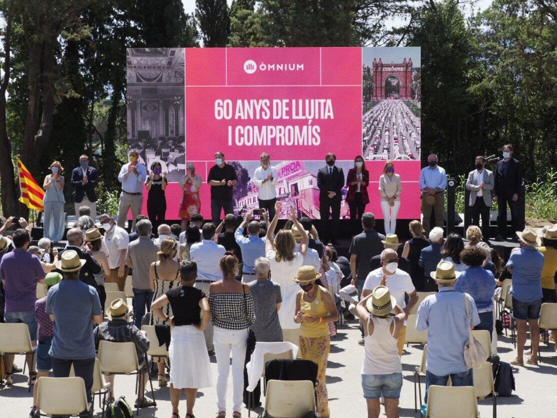 Tras esas palabras invitó a subir al escenario a Puigdemont, Junqueras, Anna Gabriel, Carme Forcadell, Meritxell Serret, Joaquim Forn, Jordi Sànchez, Josep Rull, Lluís Puig, Clara Ponsatí, así como Carles Mundó y Meritxell Borràs (que sólo fueron condenados por desobediencia al mostrar arrepentimiento y no tuvieron que ingresar en prisión), más el presidente de la Generalidad, Pere Aragonès, la del Parlament, Laura Borràs y el vicepresidente de la Generalidad Jordi Puigneró. A la foto se sumó también el alcalde de Elna, Nicolás García, del Partido Comunista francés.