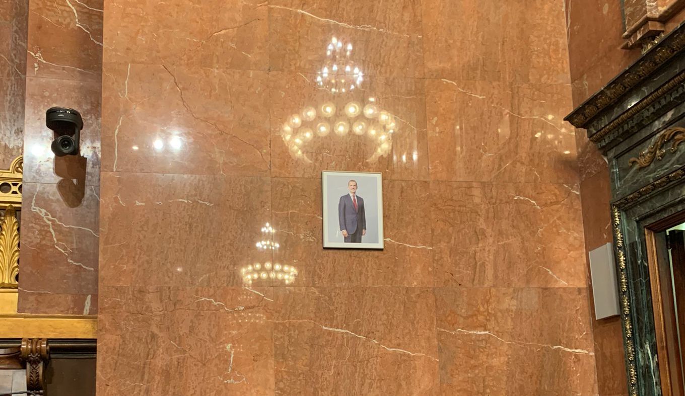 El retrato del Rey desapareció del salón de plenos al poco de asumir el cargo de alcaldesa Ada Colau, en 2015. Los entonces concejales Gerardo Pisarello y Jaume Asens (ahora diputados de Podemos en el Congreso) se encargaron de su retirada en una acción propagandística que fue respondida con una denuncia por parte del PP. El pasado día 6, el Supremo dio a conocer la resolución por la que obligaba a Colau a restituir la imagen del monarca.