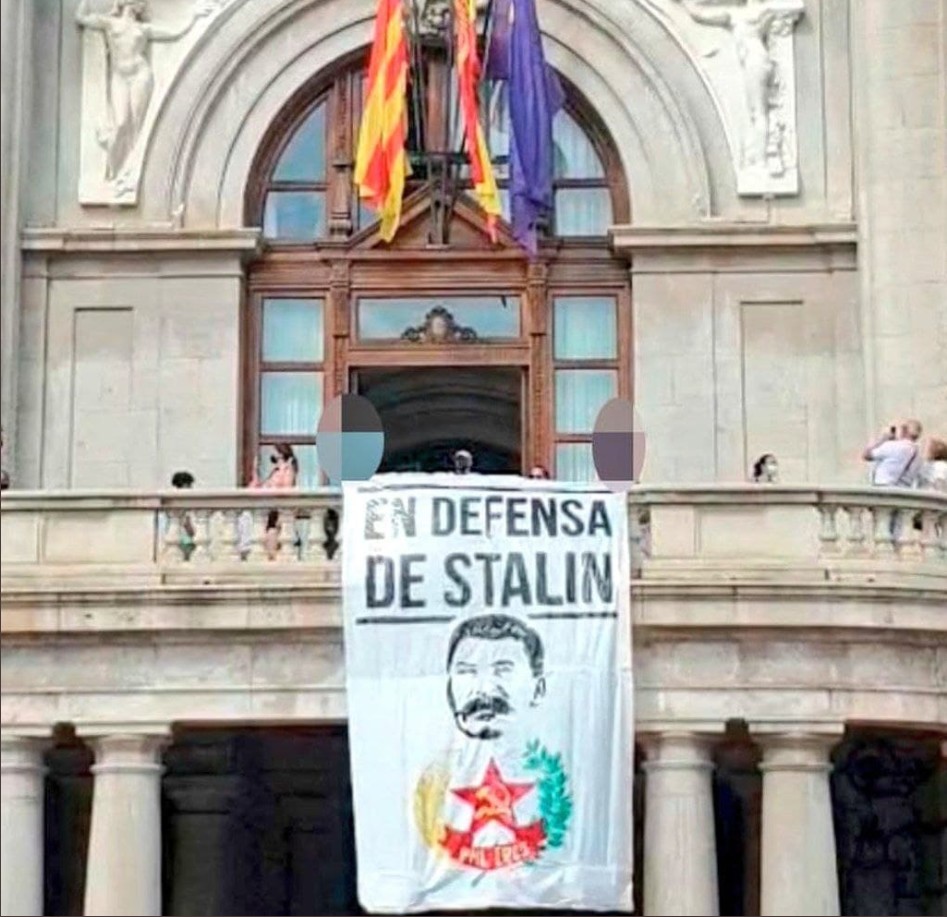 Vox les acusa, también, de un delito de enaltecimiento del comunismo por colgar el cartel en el balcón del Consistorio en el que se podía leer "en defensa de Stalin", con la imagen del dictador junto a la hoz y el martillo.