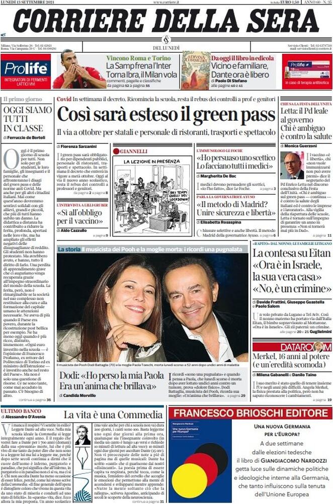Coincidiendo con la entrega del premio Llama de la Libertad que este lunes recibe Isabel Díaz Ayuso en Milán, el Corriere de la Sera, probablemente el principal diario italiano, publica en su portada una entrevista con la presidenta de Madrid en la que habla de la gestión de la pandemia en la región.
