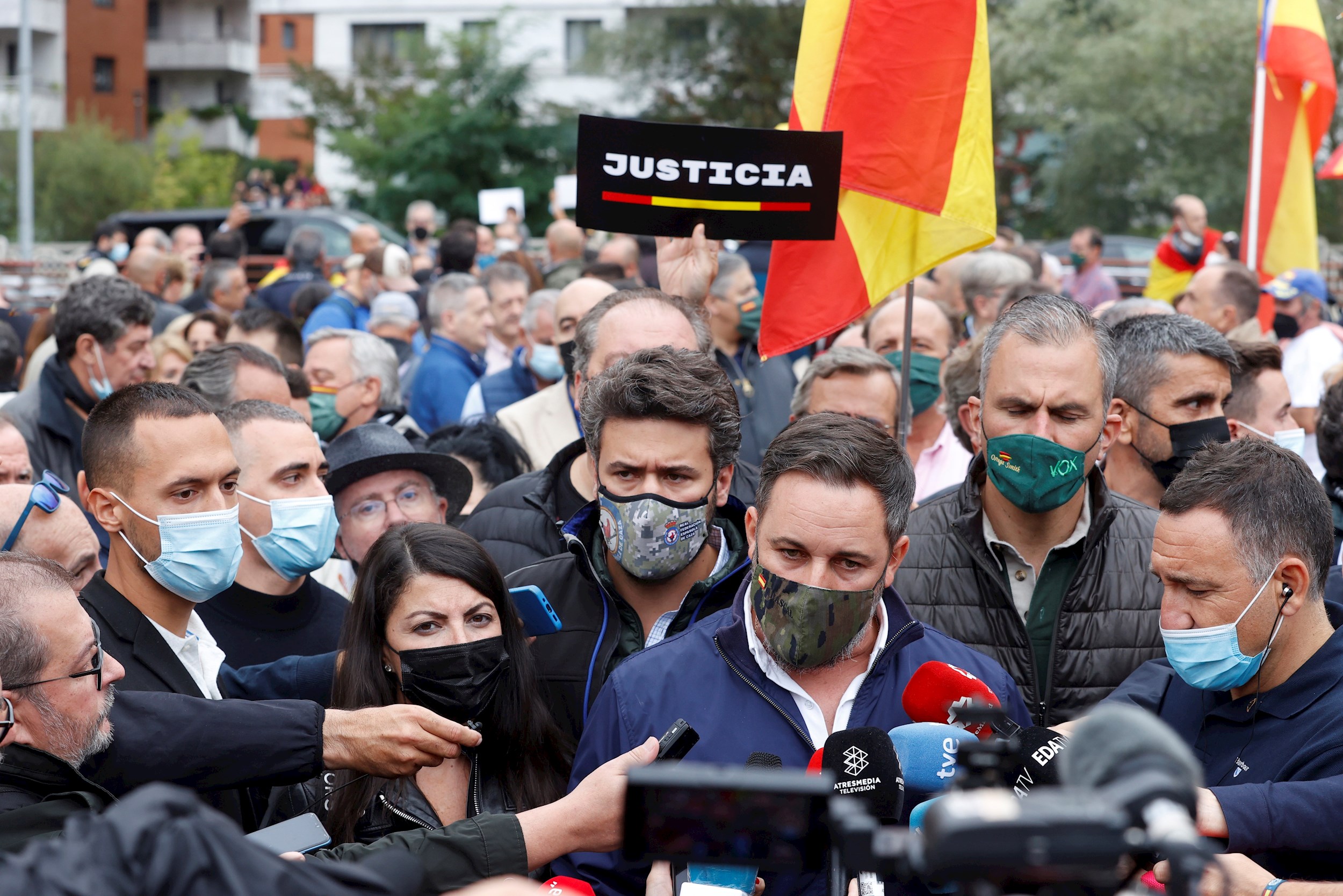 El presidente de Vox, Santiago Abascal, y Macarena Olona también se han trasladado a Mondragón para arropar a su compañero Francisco José Alcaraz, que perdió a su hermano y a sus sobrinas gemelas de tan solo tres años en el atentado de la casa cuartel de Zaragoza.