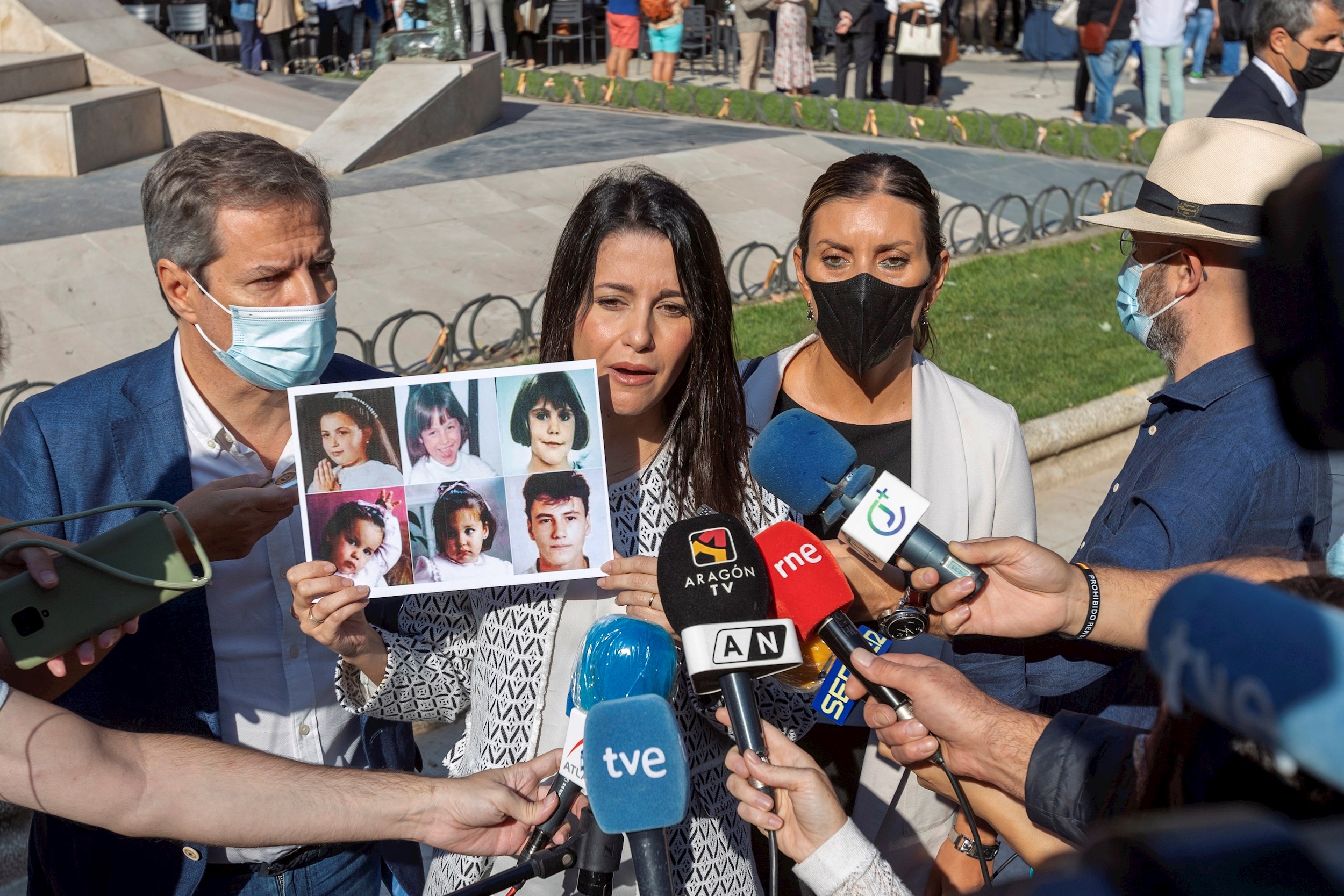 Arrimadas muestra la imagen de los seis menores de edad que fallecieron en aquel trágico atentado: el joven Ángel Alcaraz, de 17 años, y cinco niñas.