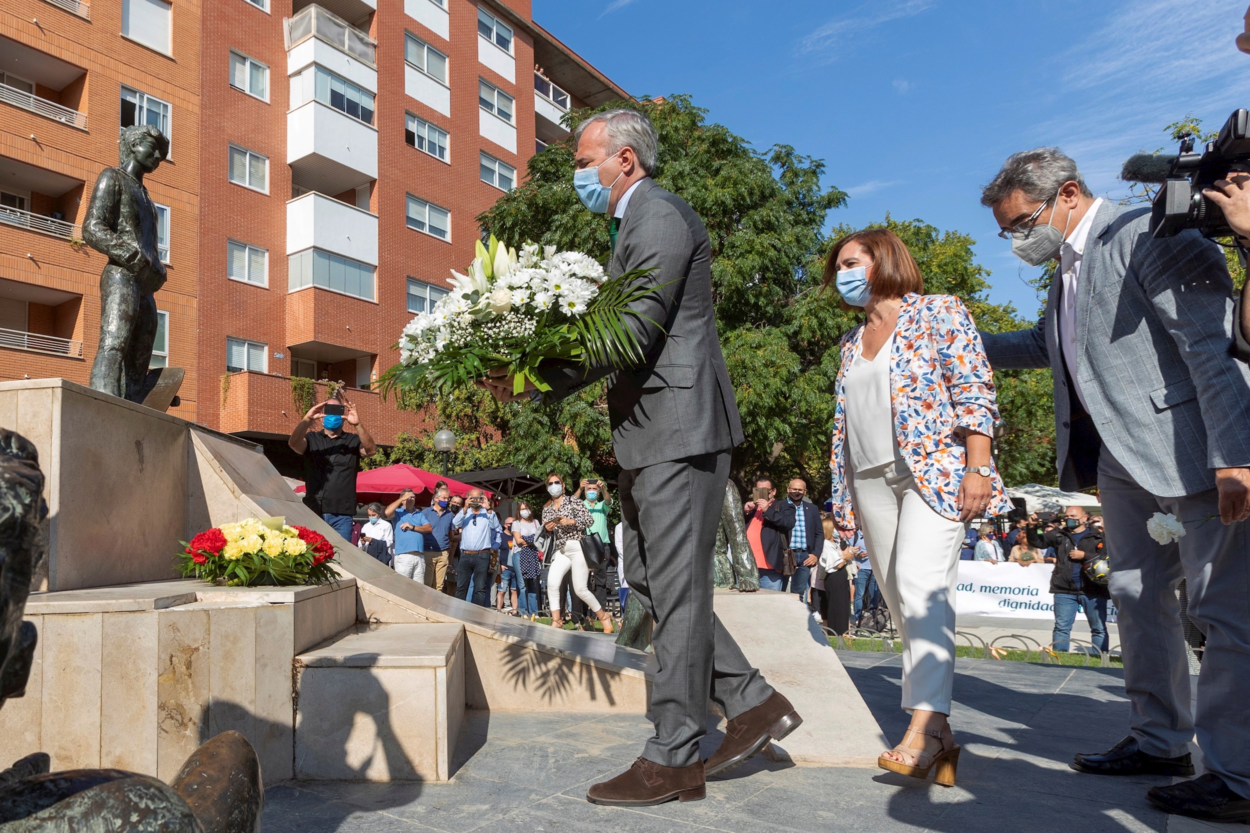 La Asociación de Víctimas del Terrorismo también ha celebrado una ofrenda floral en la casa cuartel de Zaragoza, donde Parot asesinó a 11 personas. Entre los asistentes, el alcalde de la ciudad, Jorge Azcón, y la presidenta de Ciudadanos, Inés Arrimadas.
