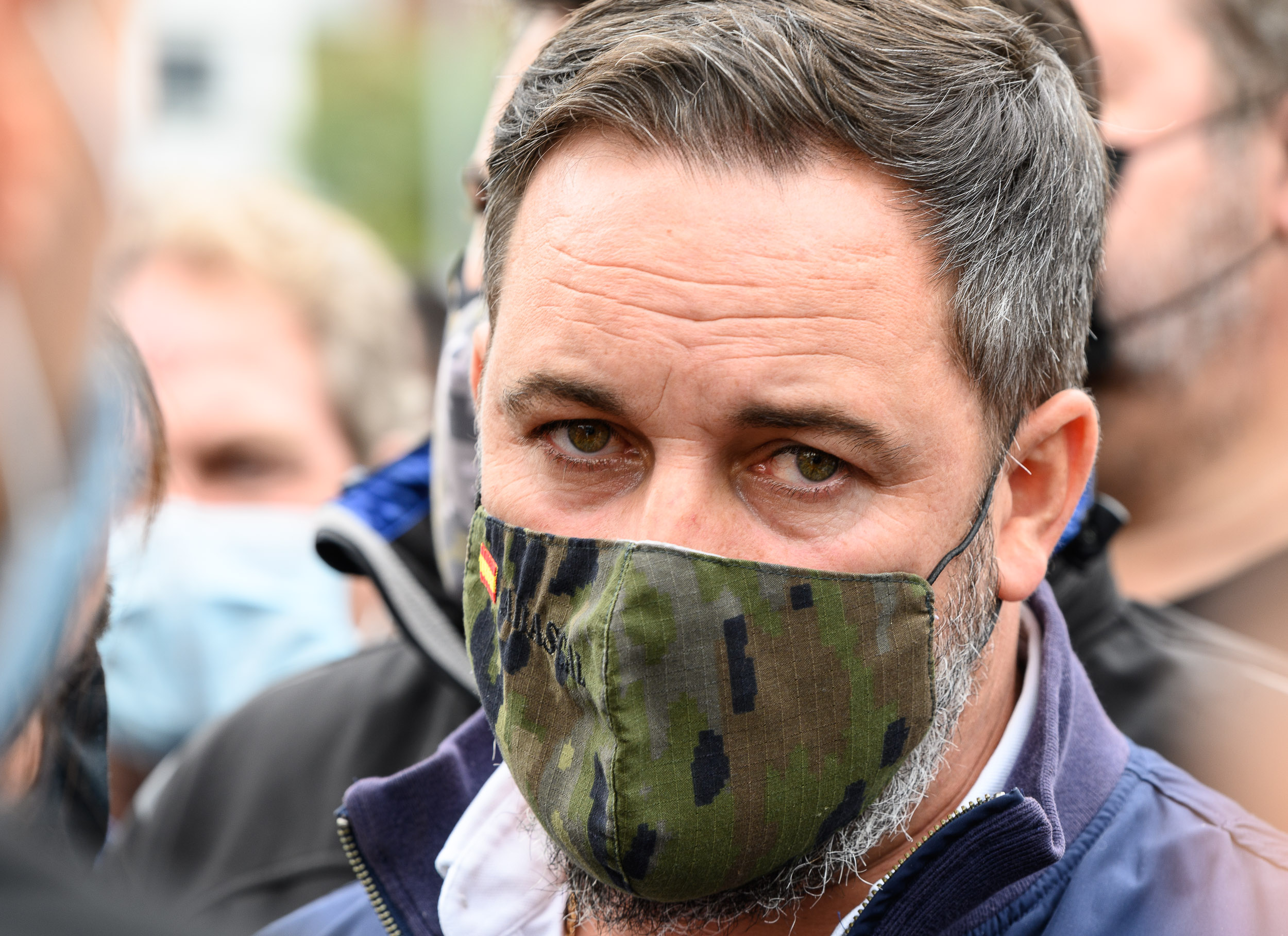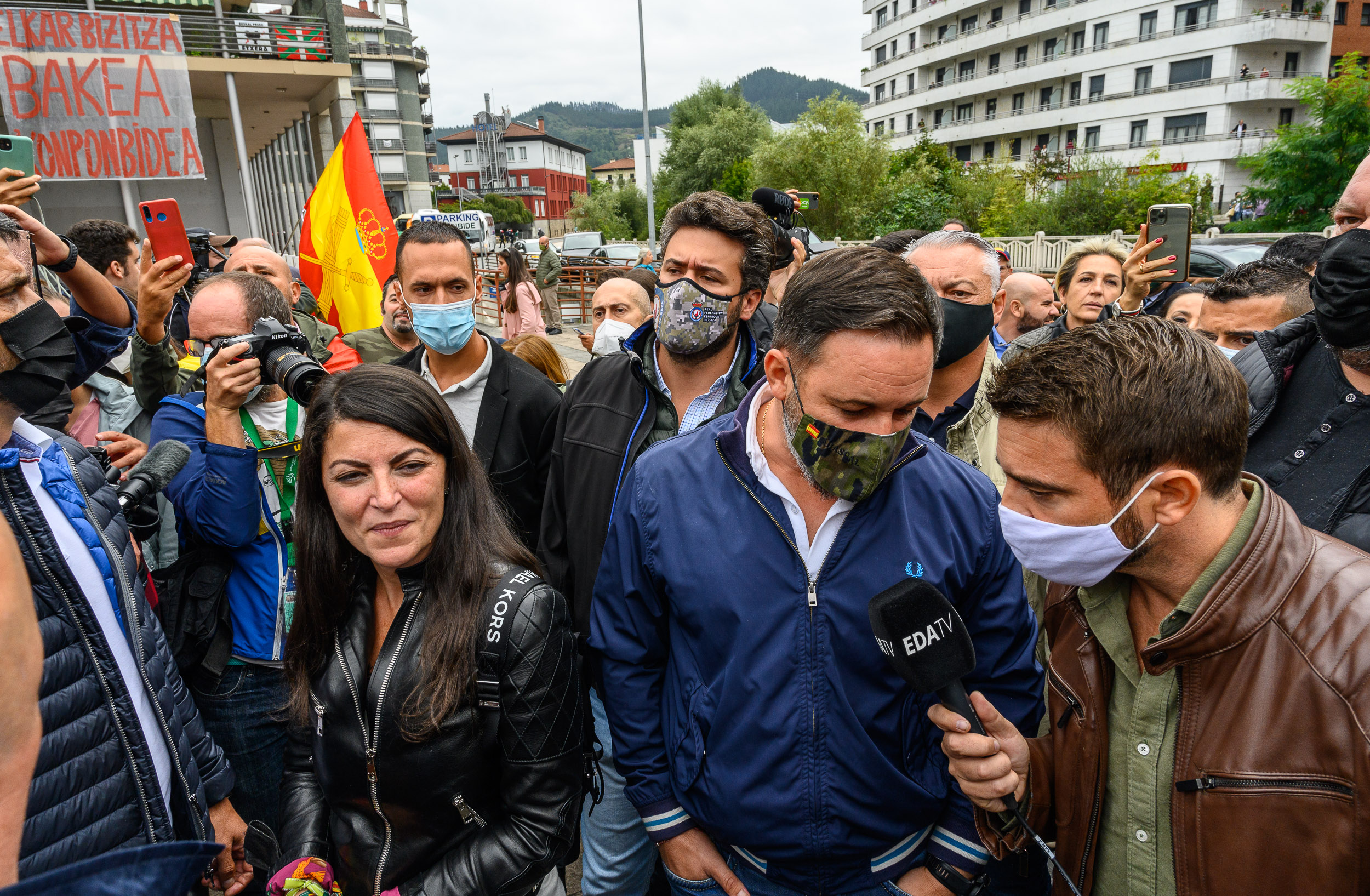 Francisco José Alcaraz, Santiago Abascal y otros dirigentes de Vox, durante la concentración.