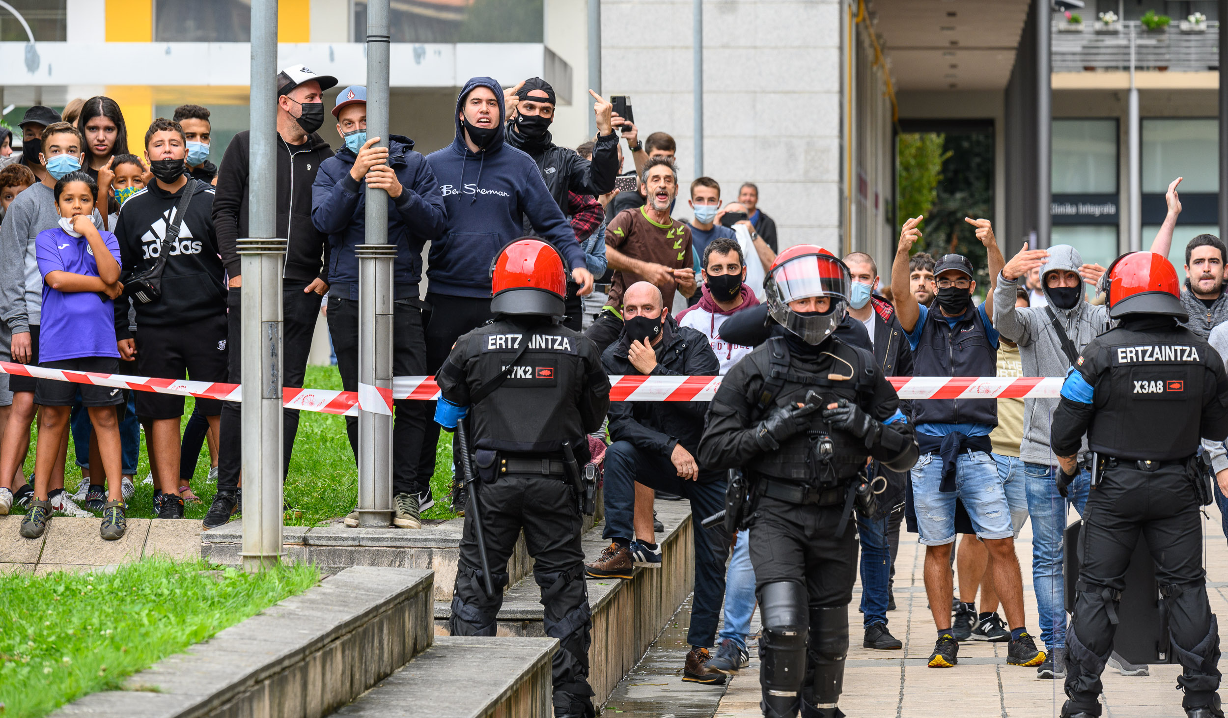 Proetarras increpando a los manifestantes en uno de los momentos de mayor tensión de la mañana.