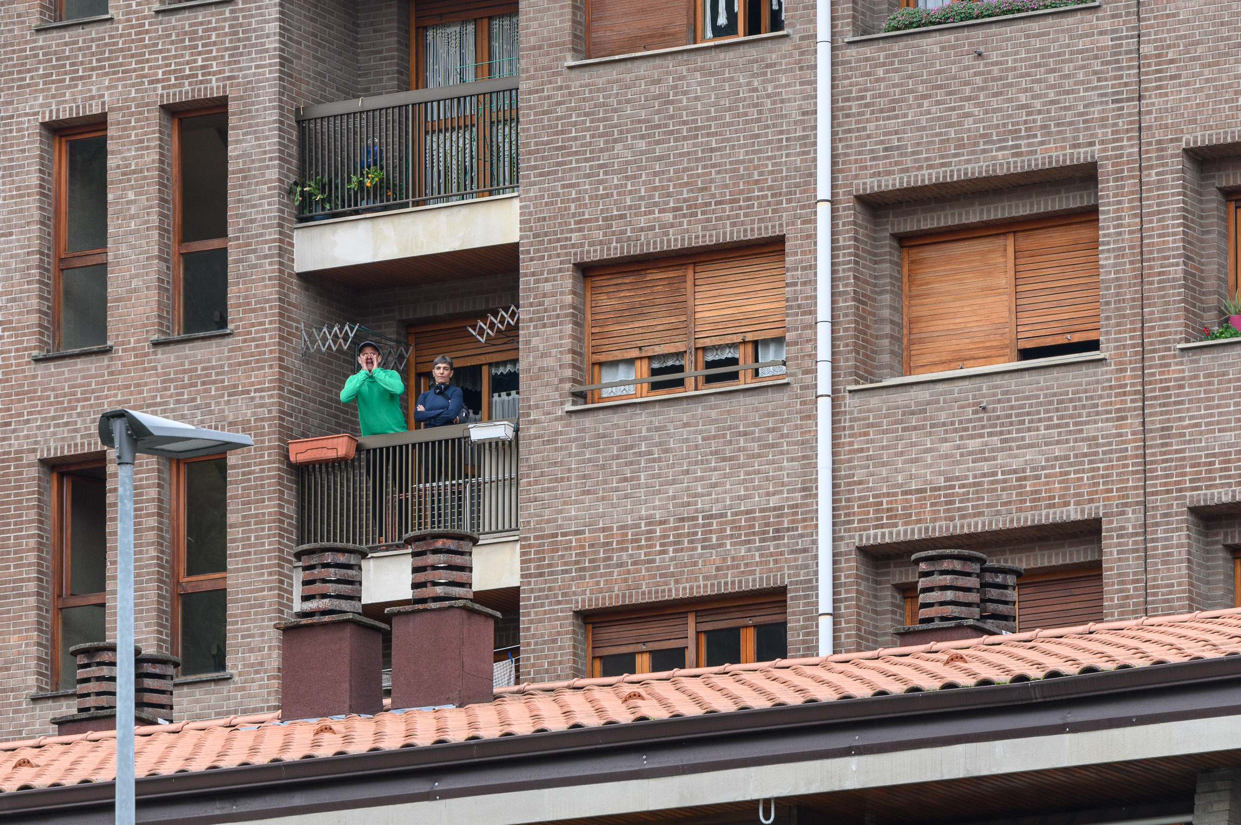 Vecinos insultando a los manifestantes desde un balcón lejano.