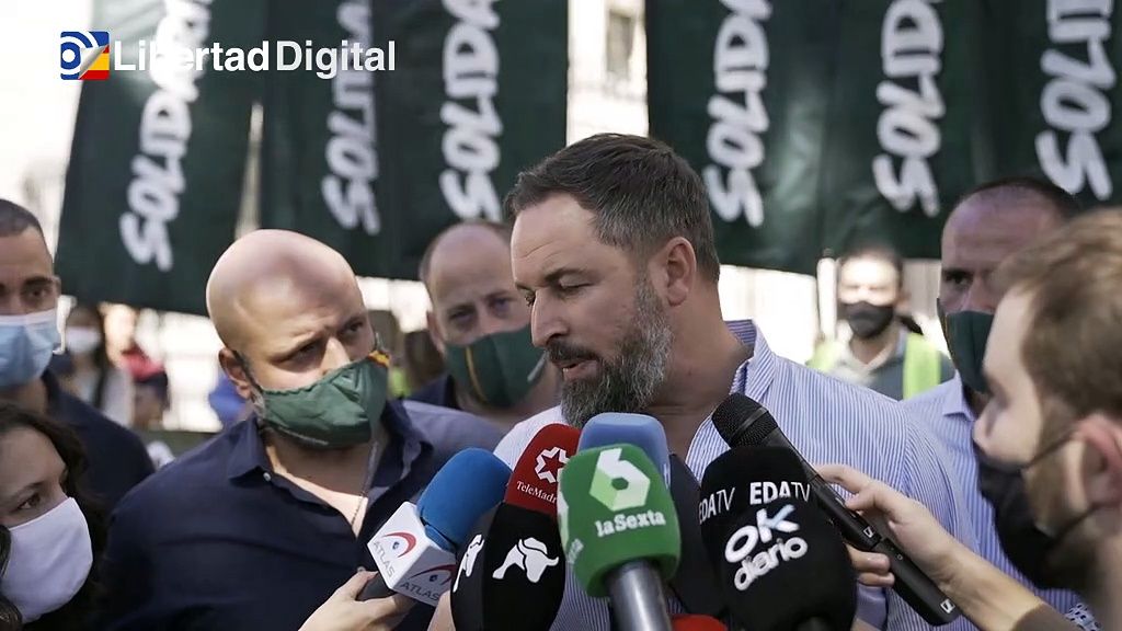 El presidente de Vox, Santiago Abascal, ha calificado al grupo de neonazis como "banda de locos y de fanáticos gritando barbaridades y ha subrayado que "apesta a cloaca socialista".