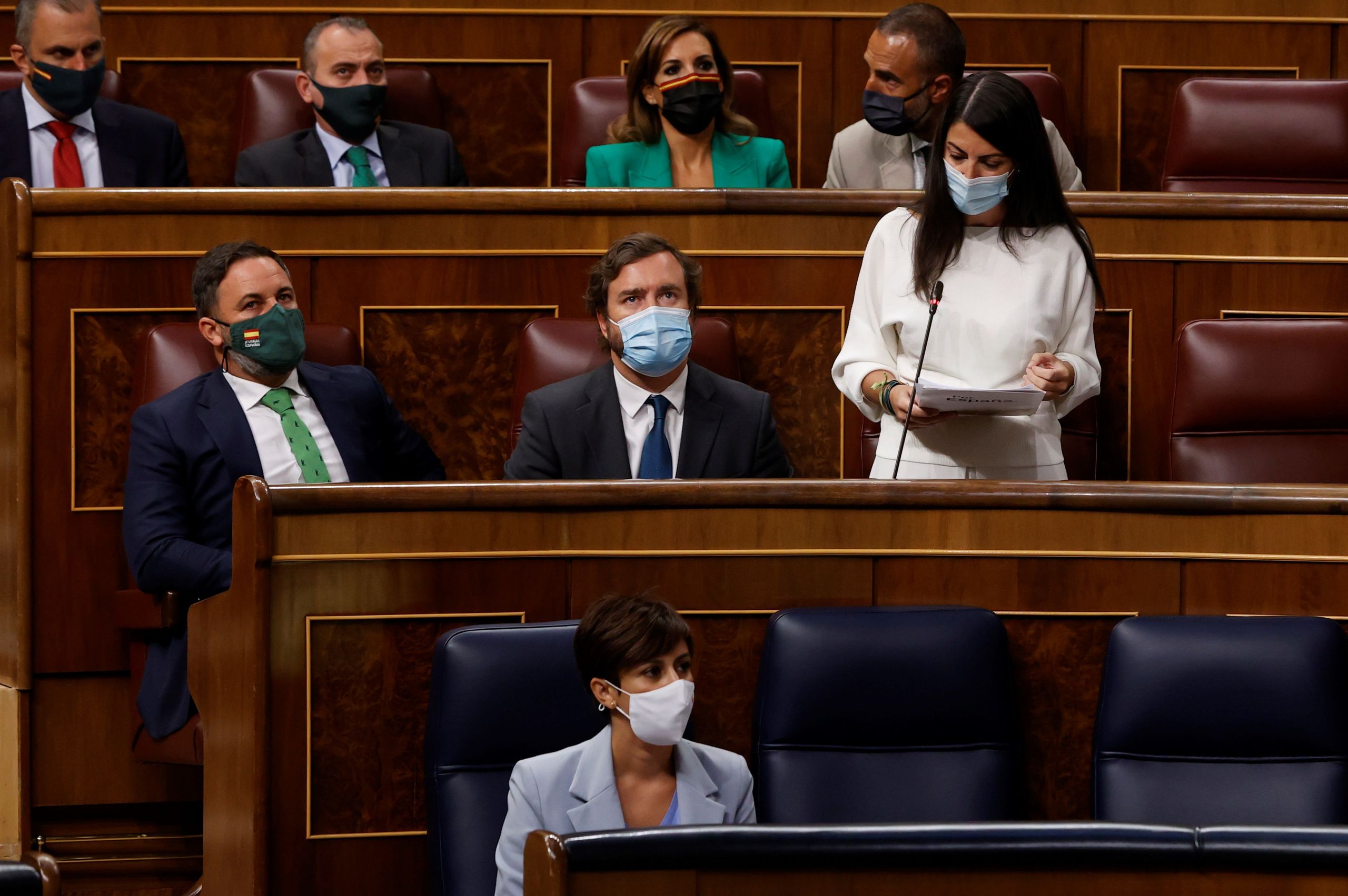 También su compañera de grupo, la secretaria general, Macarena Olona, afeó a la portavoz y ministra de Política Territorial, Isabel Rodríguez, su plantón al Parlamento por "el insulto a la cámara y estar instalados en la permanente rebeldía democrática" con unas ausencias que, según Olona, "comunicaron a última hora de la tarde de ayer". "¿No les da vergüenza insultar de esta manera a esta cámara y a los españoles?".