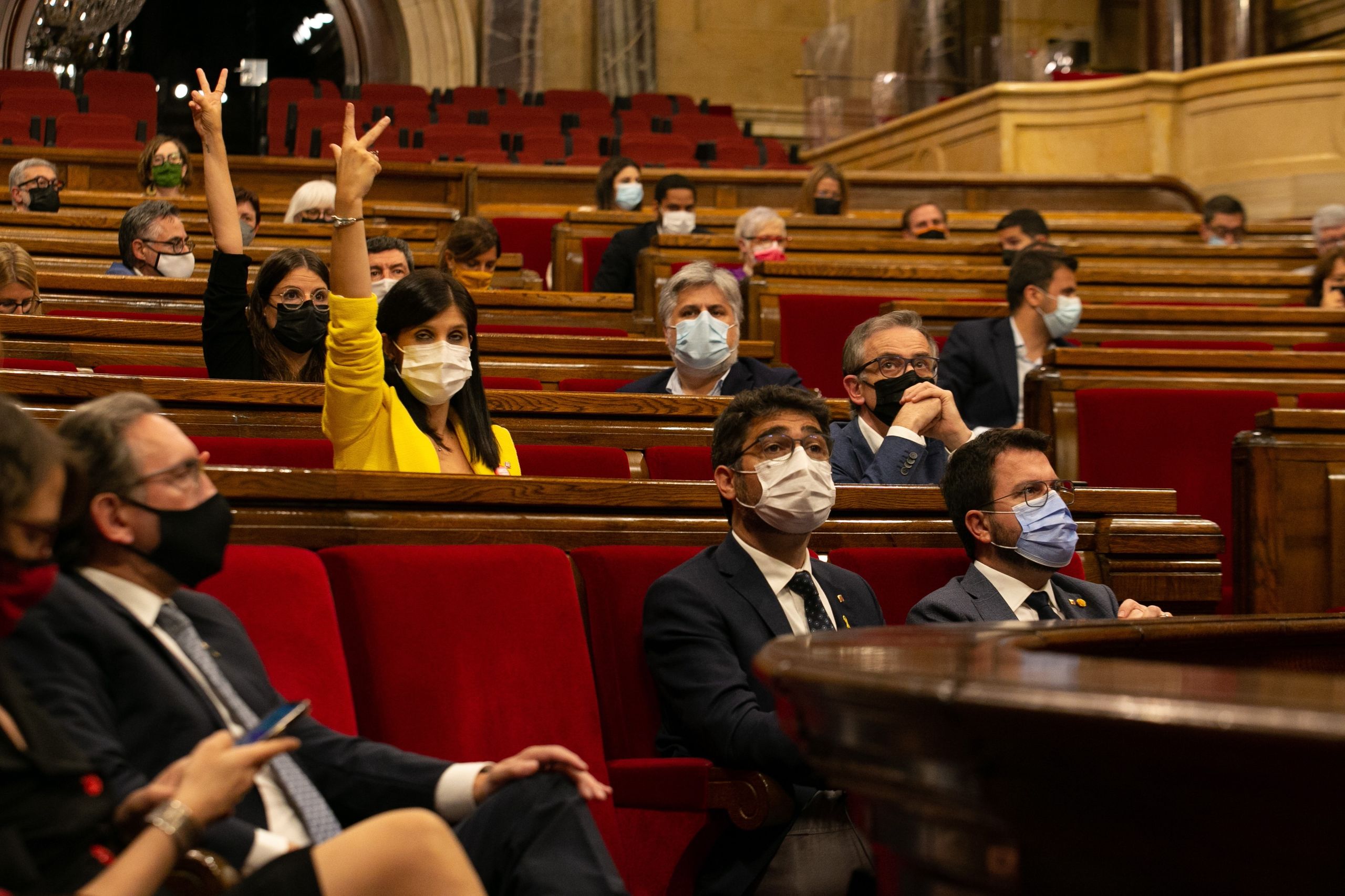 ERC y JxCat han coincidido en señalar que sólo un referéndum pactado podría sustituir el presunto mandato emanado del 1-O, de modo que la cámara ha aprobado una proposición a favor de una votación legal. En otra de las votaciones alusiva a la mesa de diálogo, JxCat ha votado en contra de sus socios de ERC, que han obtenido el apoyo del PSC y los podemitas catalanes. En este caso, el Parlament ha aprobado impulsar la mesa de diálogo y ha recalcado que tal mesa debe ser "de gobierno a gobierno", lo que cierra el paso a los indultados de JxCat.