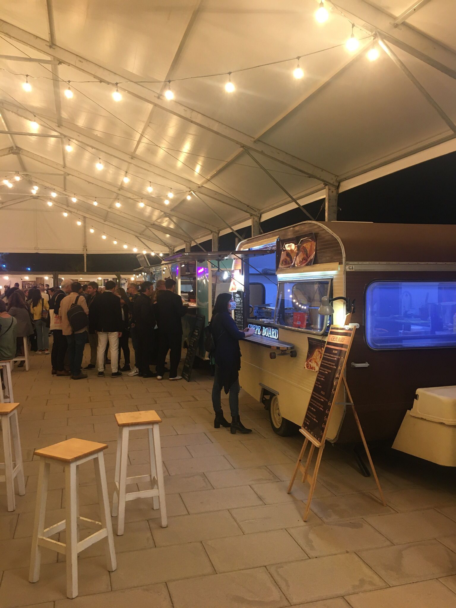 El Congreso del PSOE también tiene algo de feria gastronómica con foods trucks que te permite viajar a sabores de diferentes partes del planeta. Uno vende tacos mexicanos, otro está especializado en pizzas italianas, algunos se decantan por crepes franceses e, incluso, hay otro de comida estadounidense como hamburguesas o perritos calientes. Se puede comer, y sobre todo beber, en tres enormes carpas decoradas con luces y renombrados como "espacios chill out".