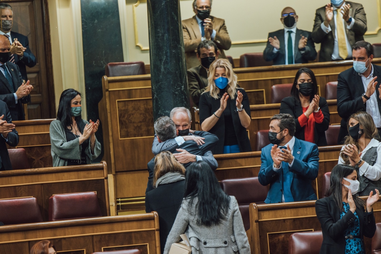 Fuentes de Vox explican que gritó ¡presente! por cada uno de los asesinados, tres veces, por ser sus amigos y compañeros de promoción, como el padre de Díaz. Al concluir su intervención, el diputado de Cs ha recibido el aplauso emocionado de diputados de PP y Vox, incluido el presidente, Santiago Abascal, que le ha dado la mano para felicitarle. Al final, Díaz y Asarta se han abrazado emocionados.