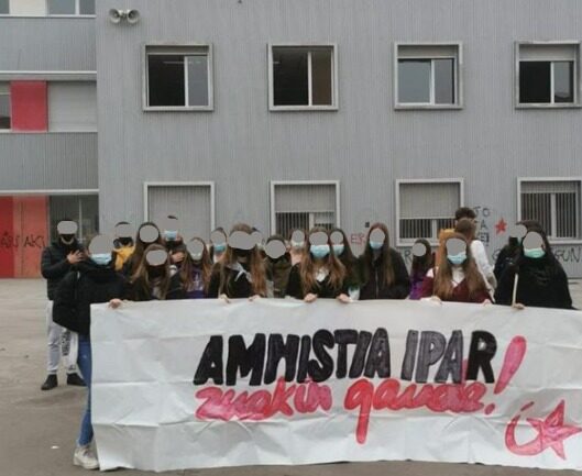 "El pasado día del Olentzero, 24 de diciembre, se celebró en dicho centro un acto político en el que se utilizó a menores de edad para efectuar un acto de homenaje a los presos etarras en el que dentro del recinto de la institución de enseñanza se exhibió una pancarta pidiendo la amnistía para los terroristas proclamando: ‘Estamos con vosotros’", denuncia la asociación presidida por Gloria Lago.