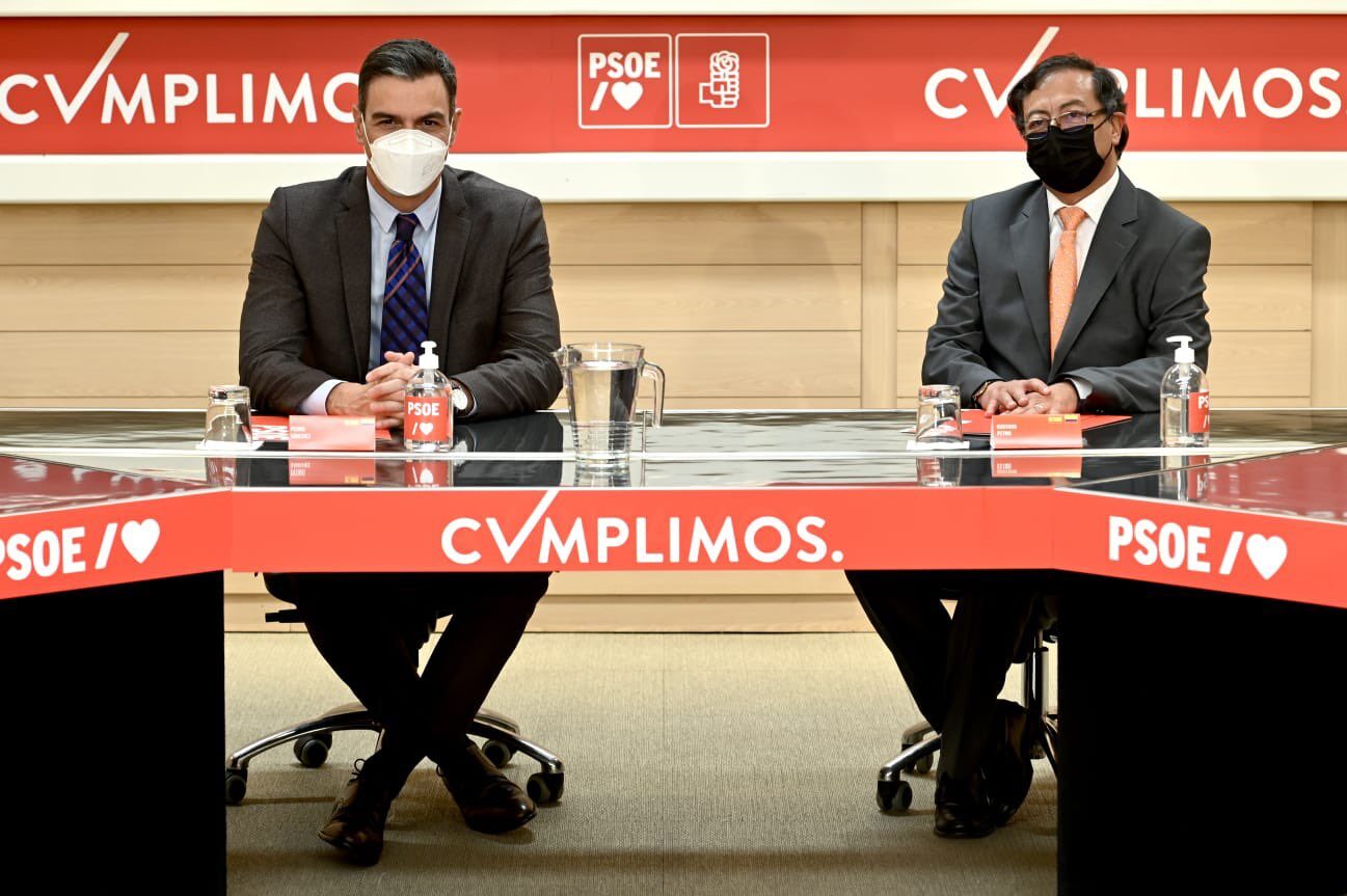Más discreto era el acto que por la tarde tenía Petro con Pedro Sánchez. El presidente del Gobierno ha escogido la sede de Ferraz para tener una reunión en la que, según el PSOE, se "estrecharon lazos para llevar a cabo políticas progresistas en Latinoamérica que garanticen el desarrollo de sociedades justa". A la reunión también acudió el número 3 del partido, Santos Cerdán, y la secretaria de Política Internacional del PSOE, Hana Jalloul.