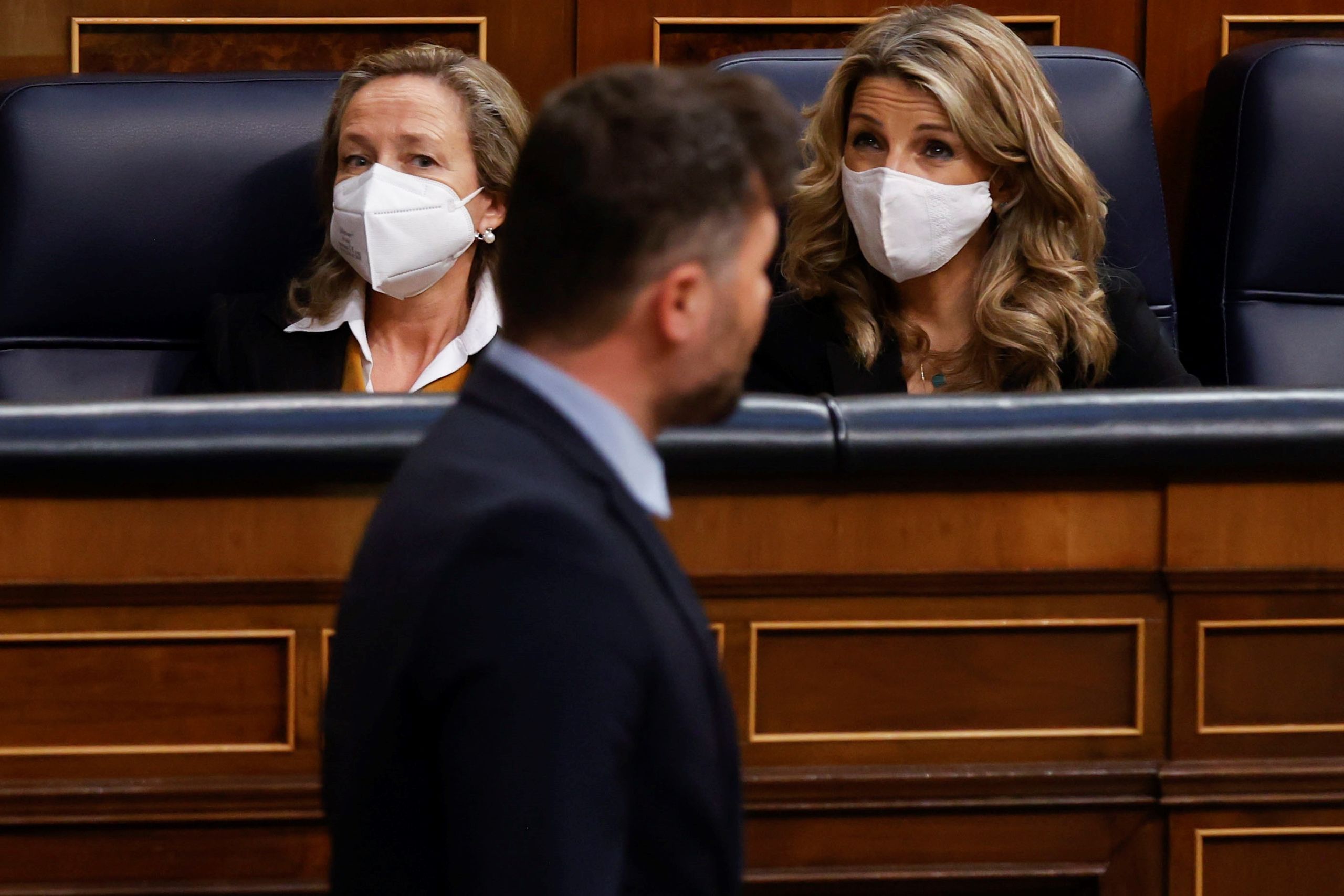 El portavoz de ERC llegaba a reprocharle a la vicepresidenta haber traído al Congreso un texto que "habría negociado, firmado y votado Albert Rivera de haber sido vicepresidente". Durante los 9 minutos de intervención desde la tribuna de oradores, Rufián no ha dejado de lanzar duros reproches hacia Yolanda Díaz por pretender negociar sin poder cambiar una coma del Decreto Ley ni poder tramitarlo como proyecto de ley para incluir enmiendas de los demás grupos.