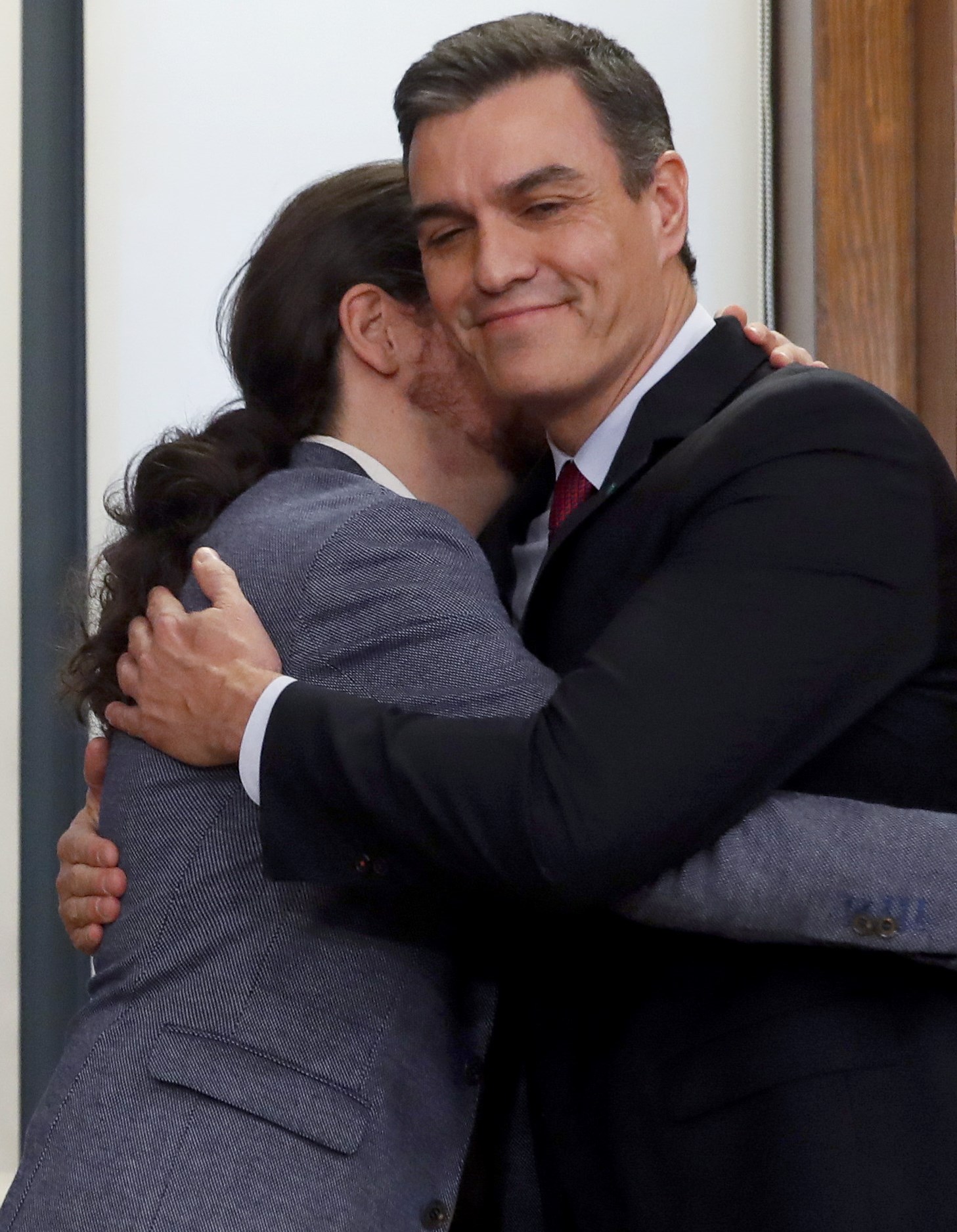 De nuevo un cariñoso abrazo entre Pablo Iglesias y Pedro Sánchez, en esta ocasión en el Congreso de los Diputados.