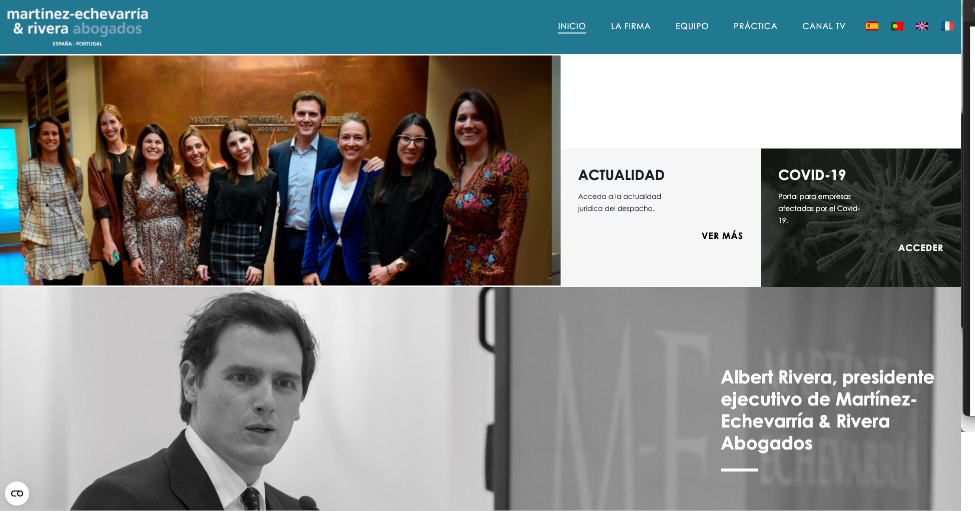 La web, todavía este miércoles mantiene Rivera en el apellido de la firma y fotos del político en su web, además del vídeo que grabó el expresidente de Ciudadanos en Septiembre de 2020 y en el que se presentaba como presidente ejecutivo de Martínez-Echevarría, para presentar el rumbo que iba a emprender ahora la firma.