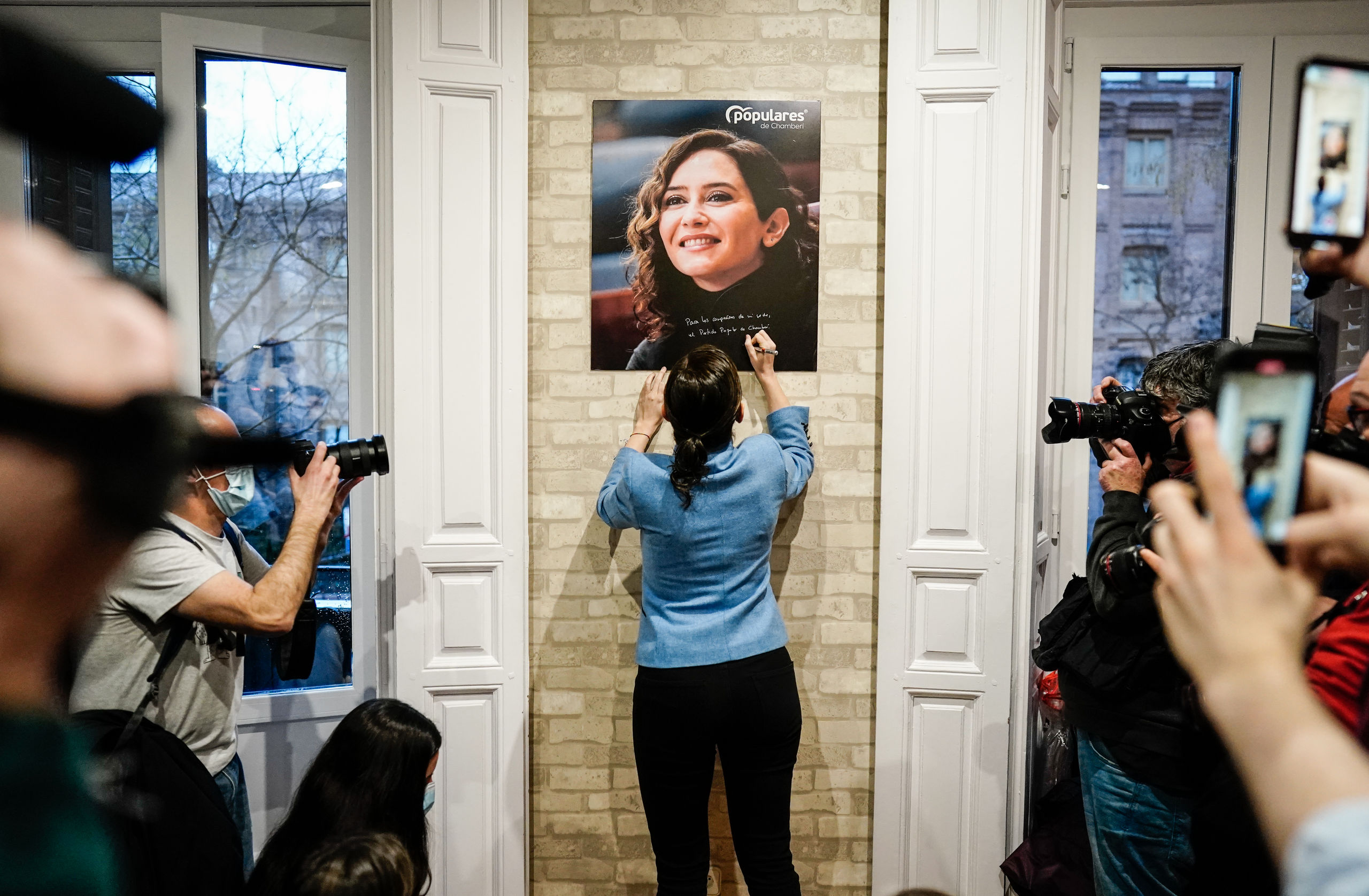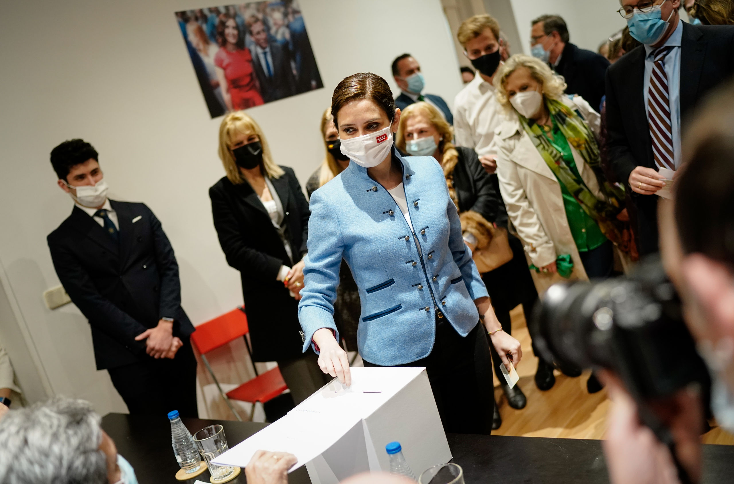 La presidenta de la Comunidad acudió este lunes por la tarde a la sede del PP de Chamberí para votar a Alberto Núñez Feijóo y a los compromisarios que acudirán al próximo Congreso de Sevilla. Isabel Díaz Ayuso aseguró, tras meter su papeleta en la urna, que el también presidente de Galicia cuenta con un proyecto "con sentido de Estado" que abrirá una nueva etapa en el partido para ser una alternativa que llegue "pronto" al Gobierno de España.