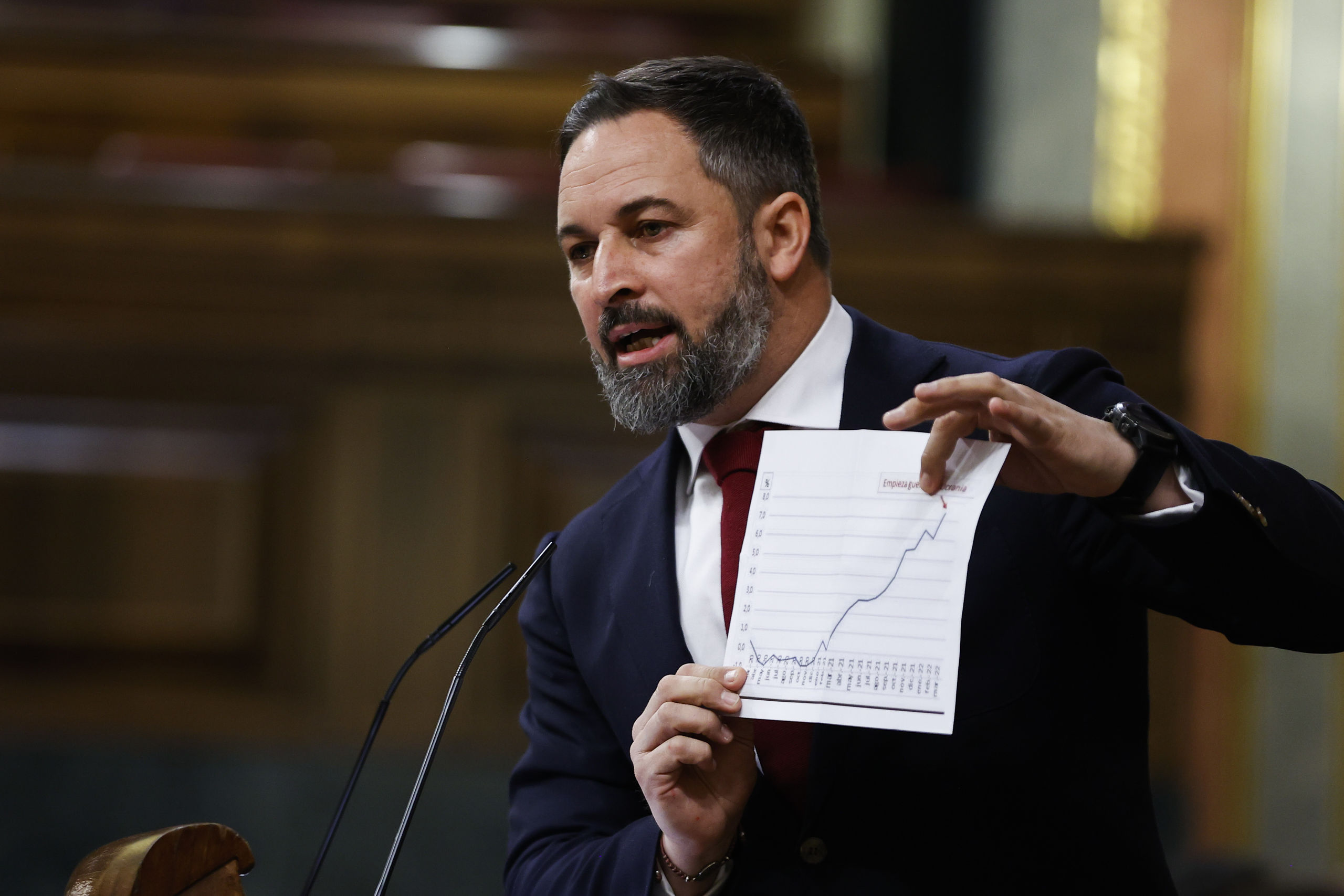 Santiago Abascal ha vuelto a asumir el peso de la oposición a Pedro Sánchez durante su comparecencia en el Congreso para explicar la postura de España sobre el Sáhara, las conclusiones del Consejo Europeo, la última cumbre de la OTAN y las medidas económicas aprobadas por el Gobierno para hacer frente a la crisis energética. El líder de Vox ha acusado al presidente de ser un "autócrata" que actúa al margen de su partido, de sus socios de gobierno, el Congreso, sus votantes o los españoles.