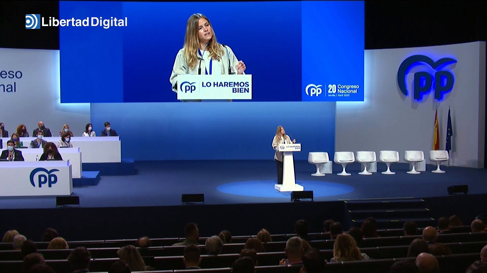 Muy emocionada y con la voz casi rota, la presidenta de las NNGG del PP, sorprendió en su intervención con un cariñoso recuerdo al presidente saliente, Pablo Casado.