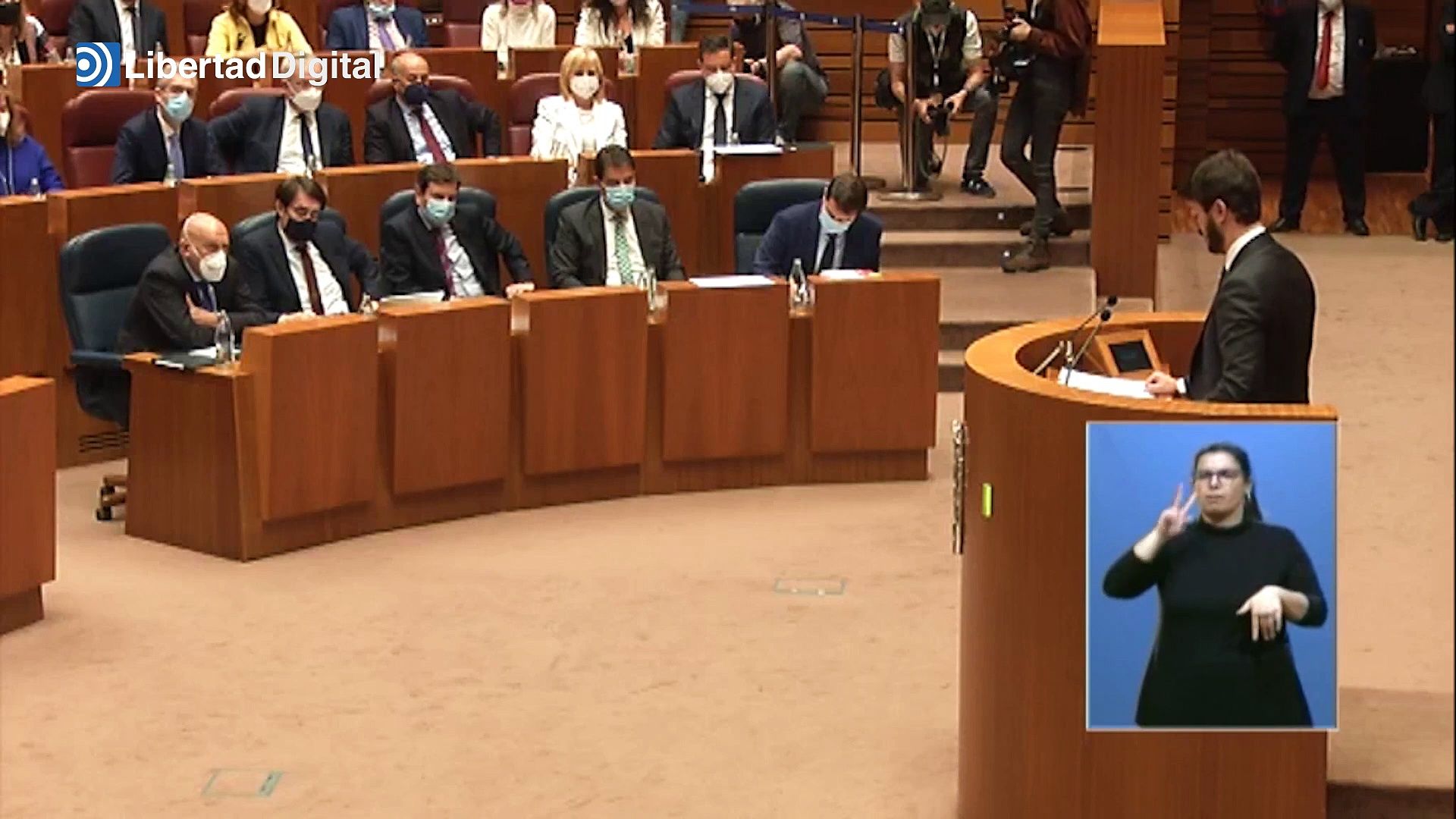 El portavoz del Grupo Parlamentario Vox de Castilla y León, Juan García-Gallardo, en el pleno de investidura de las Cortes de Castilla y León, ha agradecido a Alfonso Fernández Mañueco, que haya "estado a la altura pese a las grandes presiones recibidas" y ha remarcado su empeño en acabar con la "anomalía" de la Ley de Violencia de Género. (