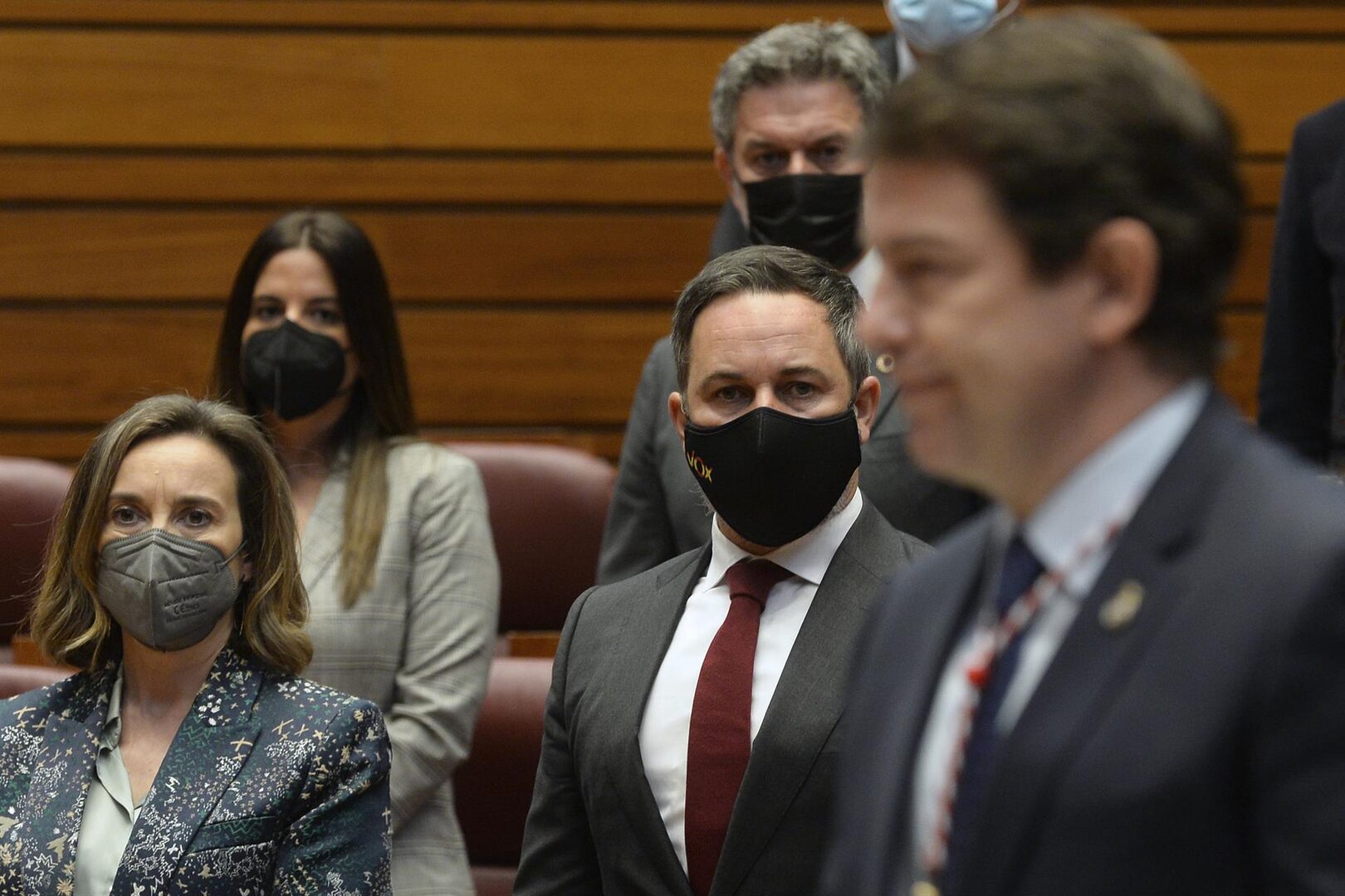 El presidente de Vox, Santiago Abascal, ha acudido por sorpresa a la investidura de Alfonso Fernández Mañueco. El partido no había confirmado su presencia en un acto al que no ha asistido el presidente del PP, Alberto Núñez Feijóo, que ha convertido esta ausencia en la principal noticia de la jornada, a pesar de que todo el protagonismo debía recaer en el presidente de Castilla y León y su pacto con Vox.