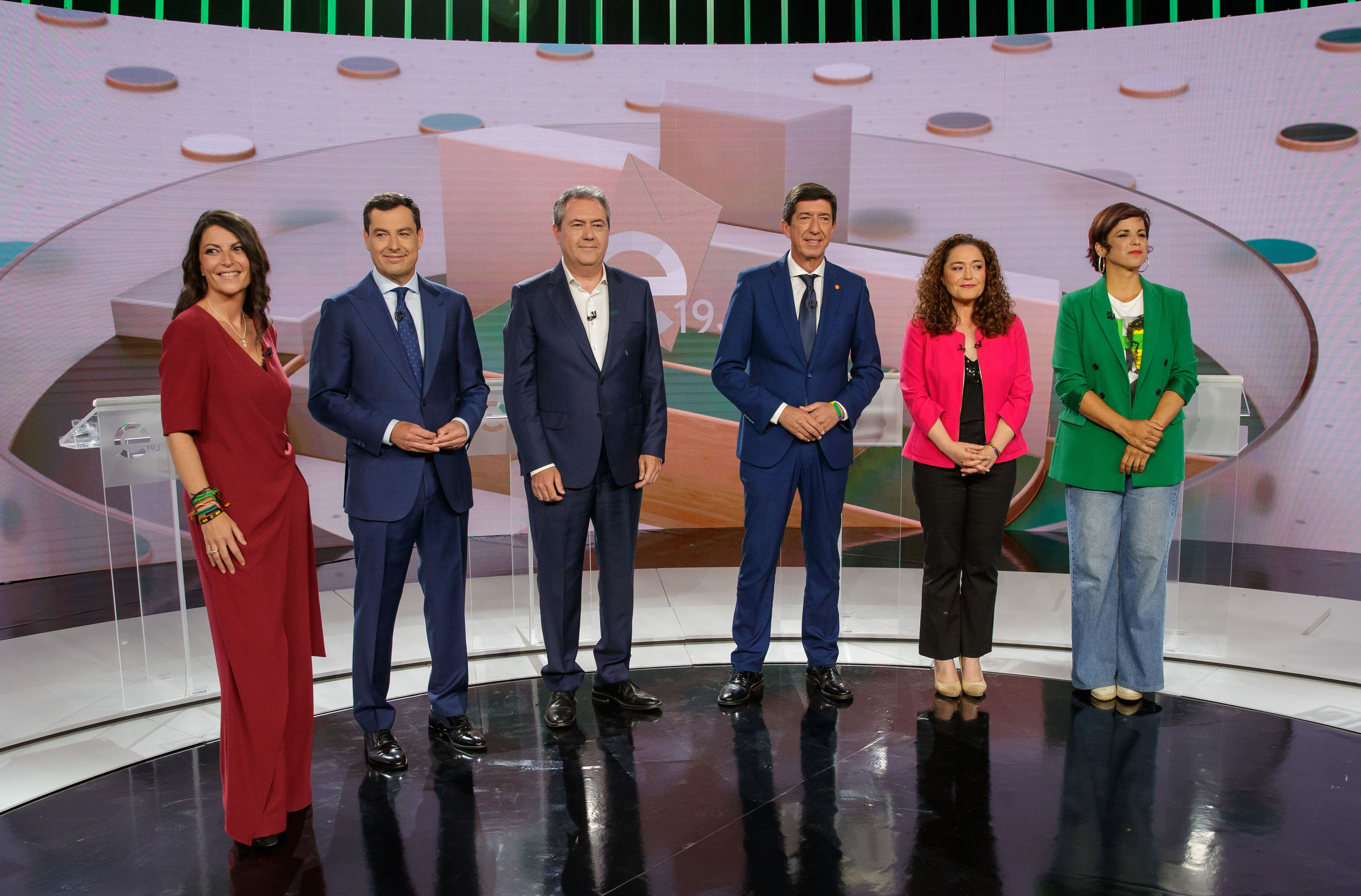 Todos los candidatos ya están en el plató de Canal Sur para hacerse las fotos correspondientes a pocos minutos de que comience el segundo debate para las elecciones del 19J.