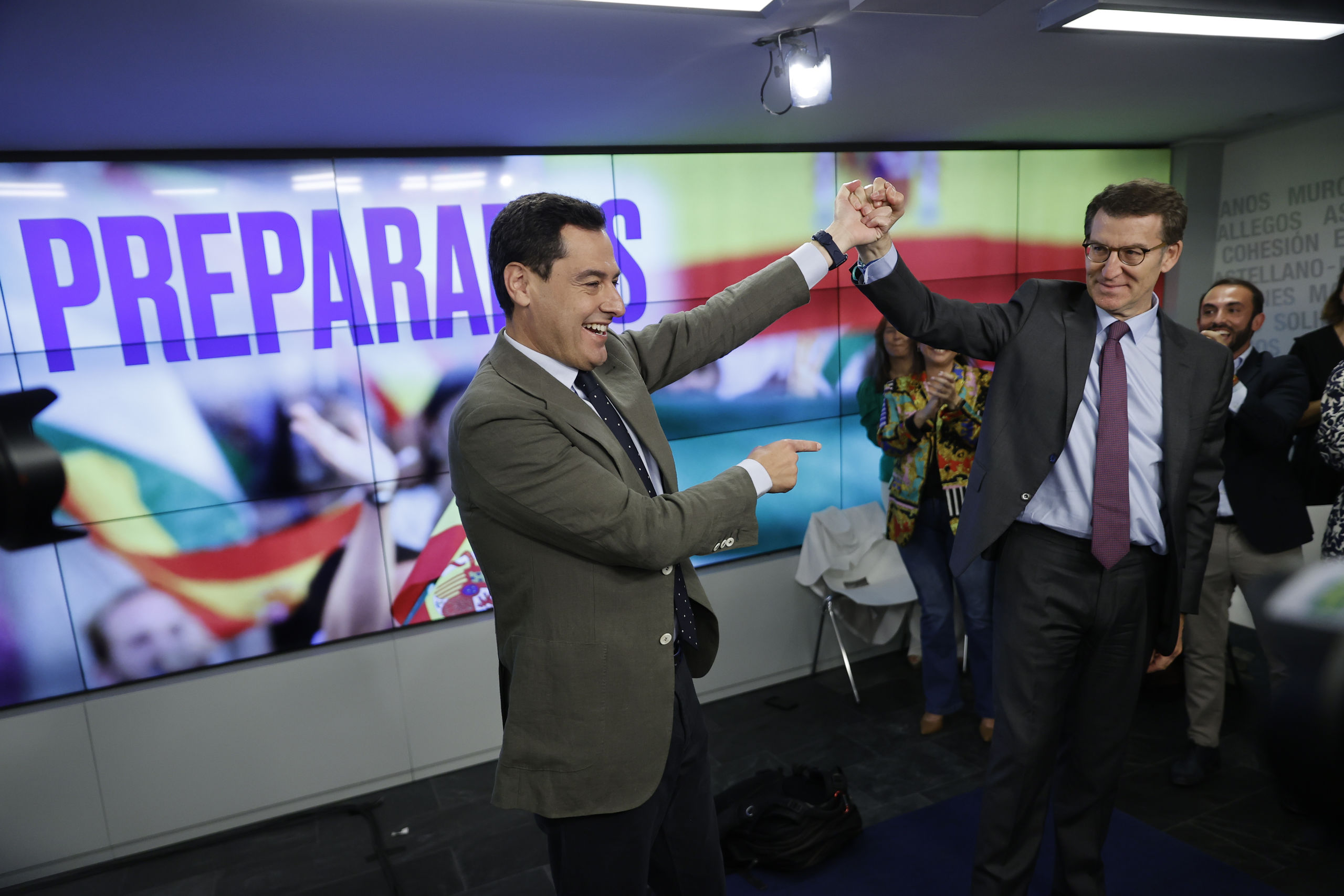Los 'populares' han visualizado de esta forma su euforia tras el incontestable triunfo de Moreno en las elecciones del pasado domingo, donde cosechó una holgada mayoría absoluta de 58 escaños y más de 1,5 millones de votos.