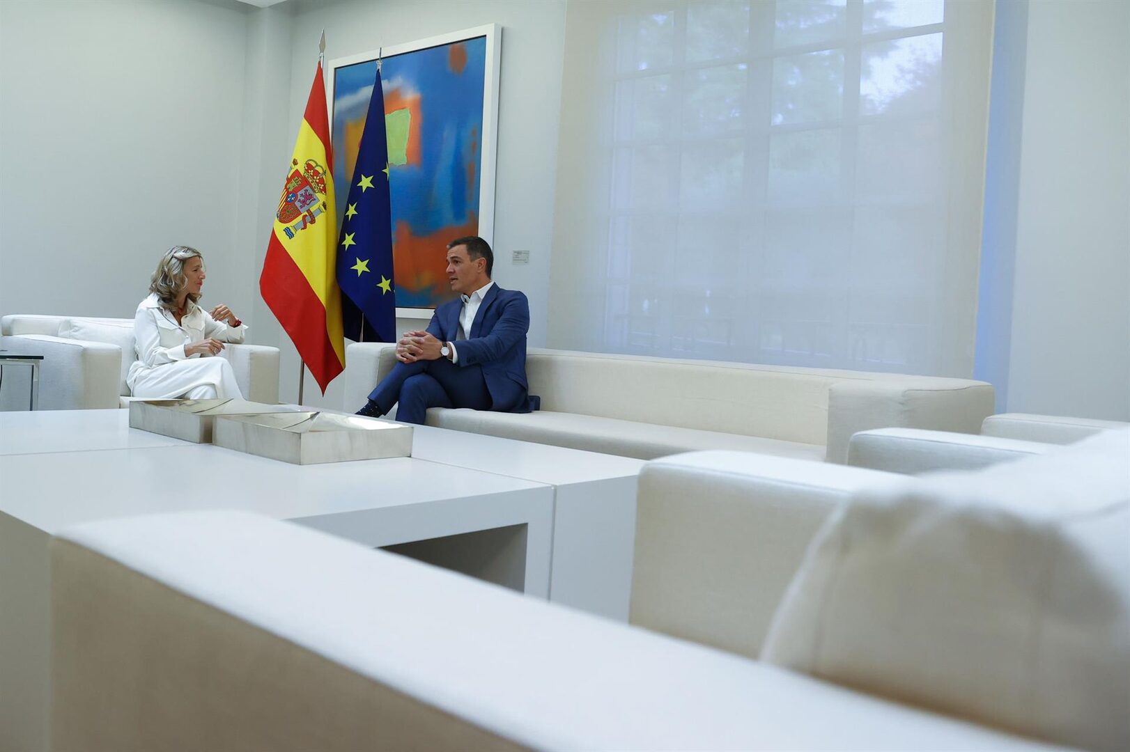Media hora más tarde, Pedro Sánchez recibía a Díaz en el salón Tàpies del Palacio de la Moncloa. El presidente, relajado, sin corbata, estaba sentado en el sofá. A su lado, la vicepresidenta segunda, Yolanda Díaz. En las fotos de las agencias se ve el rostro de la vicepresidenta. En las instantáneas de la Moncloa no se le adivina la cara, sólo su cabello. En el sector socialista empieza a haber un cierto malestar por la "sobreactuación" de Podemos a la hora de negociar.