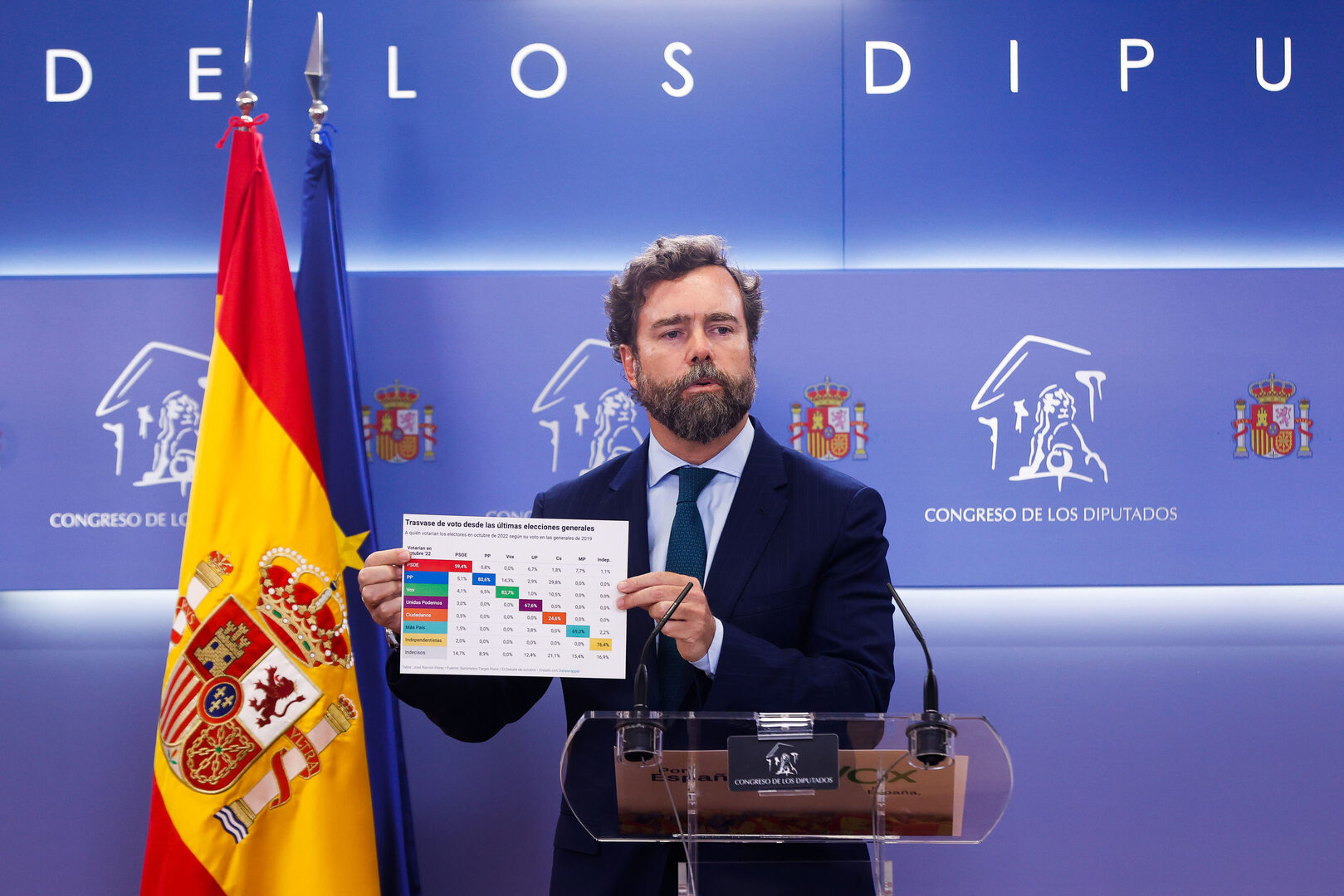 El portavoz parlamentario de Vox, Iván Espinosa, ha dicho este viernes en una rueda de prensa desde el Congreso que "van a ofrecer asesoría jurídica al policía porque la verdad no puede ser causa de un despido", después de defender que "decir la verdad se ha convertido en un acto revolucionario".