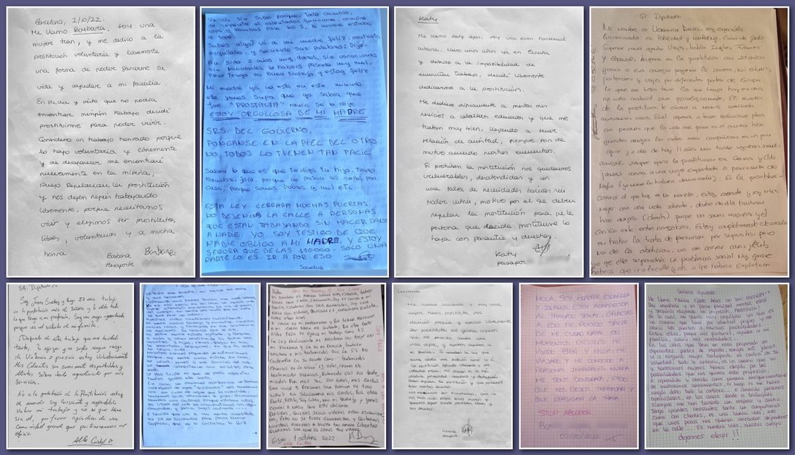 Estas son algunas de las cartas que recibirán los diputados del Congreso desde la Plataforma de personas afectadas por la abolición de la prostitución:
