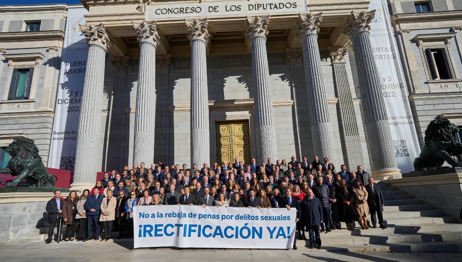 Tras la concentración, Gamarra ha pedio que no haya "ni una rebaja de pena más", y ha avanzado que el Grupo Parlamentario Popular planteará en el Congreso la reprobación de la ministra Montero para que pueda ser debatida y remitirá una carta al Ejecutivo sobre este tema quejándose por los ataques.
