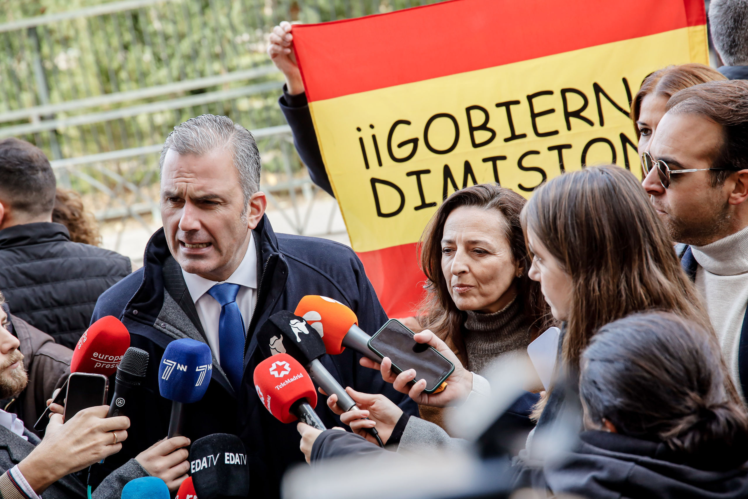 Diputados de Vox, incluido su portavoz, Iván Espinosa, se sumaron ayer a la concentración convocada por el PP frente al Congreso para protestar contra la ministra de Igualdad, provocando malestar entre algunos representantes del partido de Feijóo que les acusan de querer acaparar protagonismo.