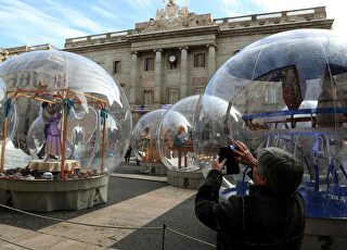 En 2016, sobre la base del poema "Ho sap tothom i és profecia" (Lo sabe todo el mundo y es profecía), los creadores del singular Belén, Toti Toronell y Quim Domene, introdujeron en una esfera retratos de Foix, Joan Miró y Pau Casals para representar a los Reyes Magos; en otra, a unos autómatas que bailan; una pareja cenando llena una tercera. La dedicada al Nacimiento estaba compuesta por cuatro figuras del Museo de Olot que representaban a San José, la Virgen, el Niño Jesús y un ángel. Fue la única licencia a la ortodoxia en la instalación, a pesar de que las tallas, previas a la Guerra Civil, emergían de unas cajas de cartón, como si el pesebre estuviera a medio montar.
