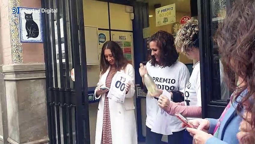 En una administración de Sevilla ha ocurrido este curioso hecho. Las regentes de este establecimiento han salido a la puerta con camisetas en las que se podía leer: "Primer premio vendido aquí". Los periodistas se congregaban en la puerta para grabar las celebraciones. En este ambiente festivo, una de las dependientas de esta administración de loterías ha empezado a agitar la botella de cava para mojar a los allí presentes.